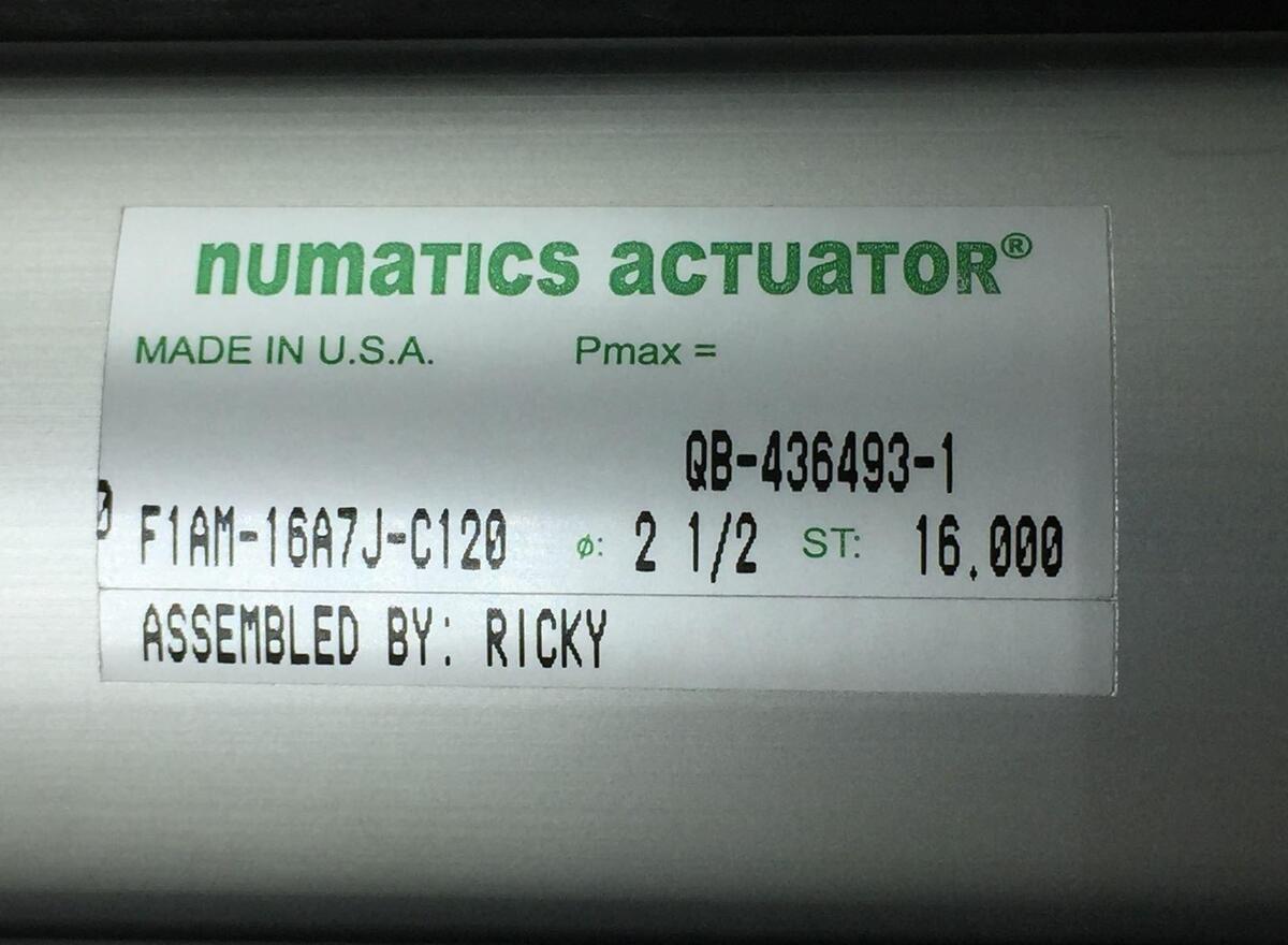 Numatics F1AM-16A7J-C120 Front Flange Mount Actuator Bore 2-1/2" Stroke 16"