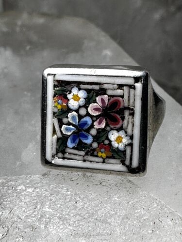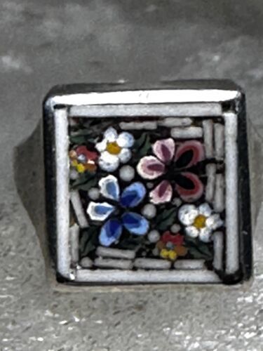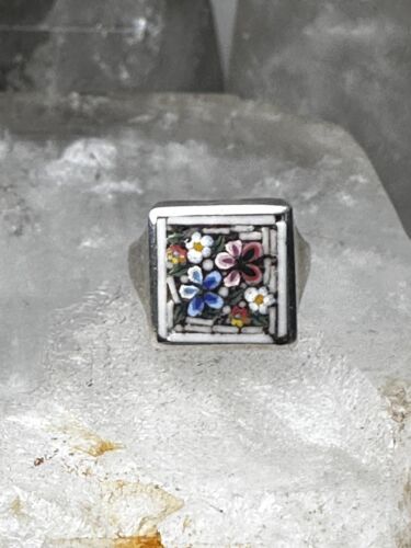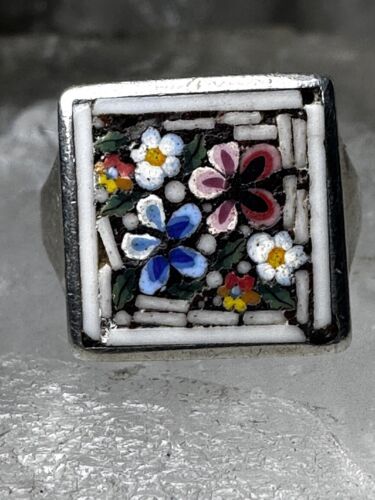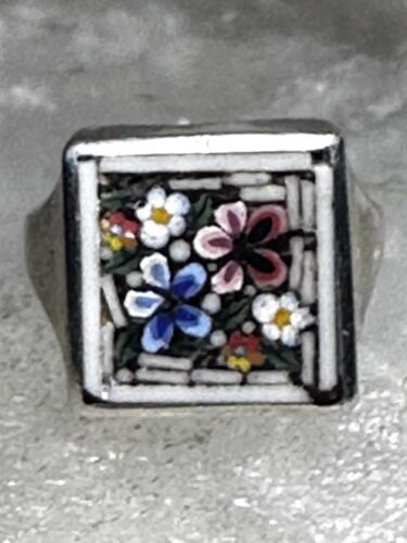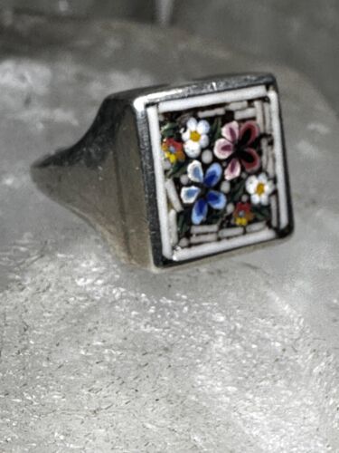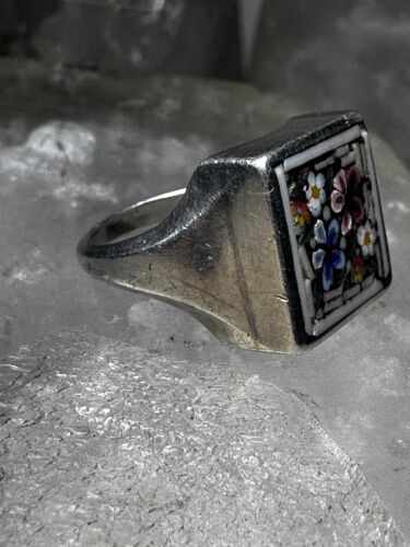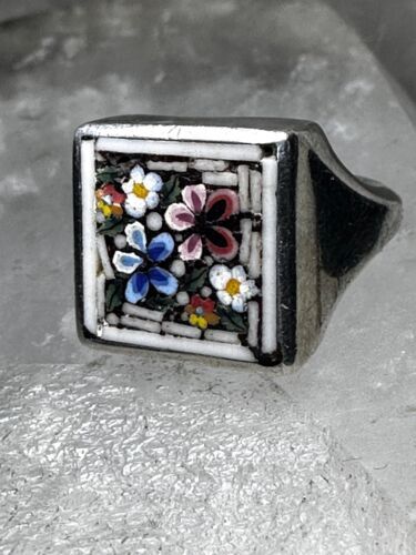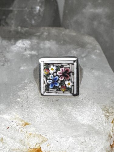 Flower ring Mosaic size 3.75 pinky band sterling silver women girls