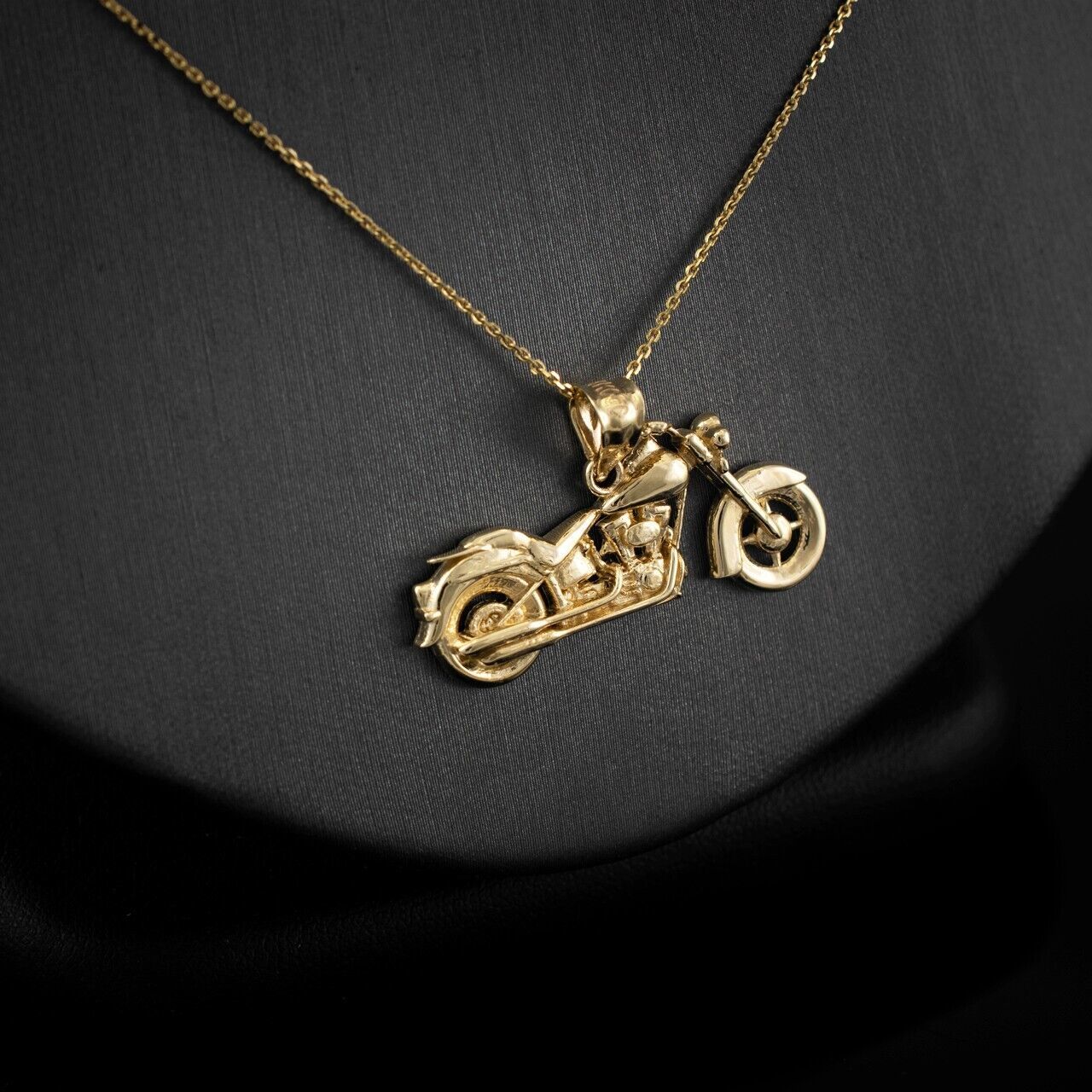 Gold Motorcycle Bike Pendant Necklace (10K, 14K, Yellow, White, Rose gold)