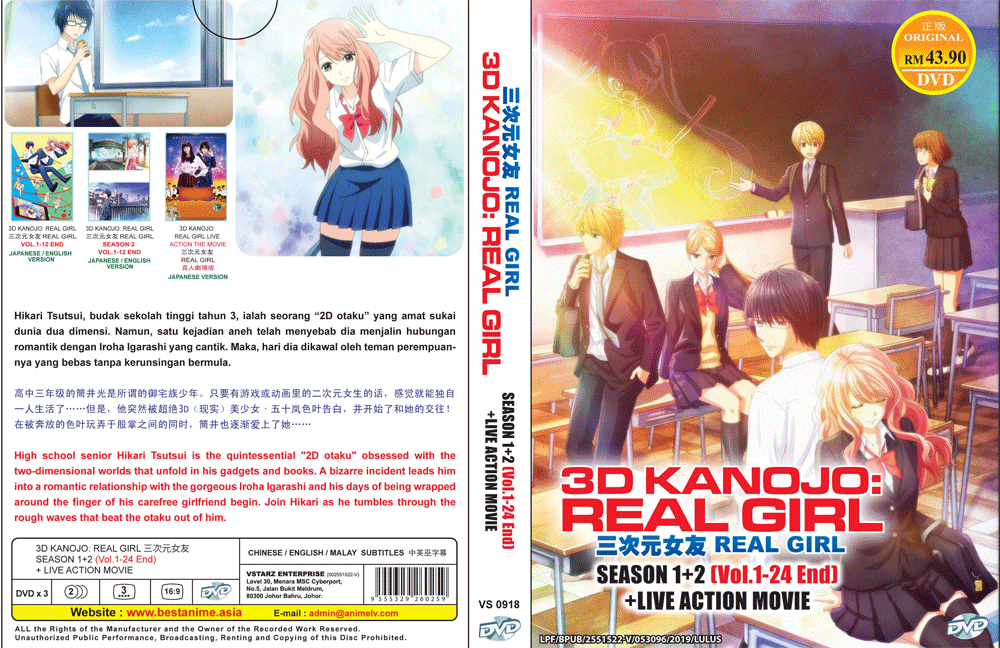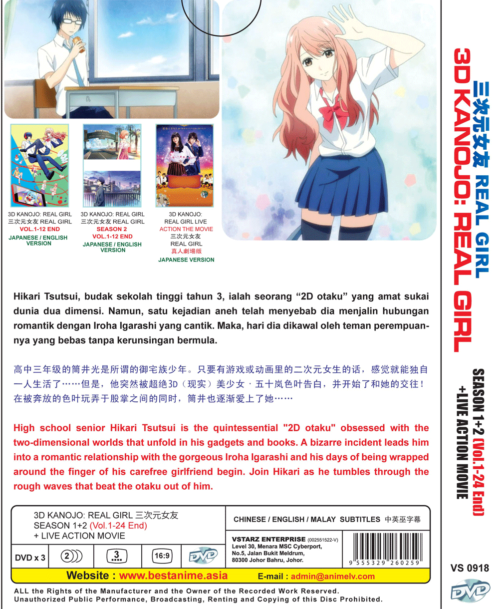 Title : 3D Kanojo : Real Girl Season 1 - 2 Vol. 1 - 24 End (English Dubbed) + Live Action Movie (Japanese Dubbed)
