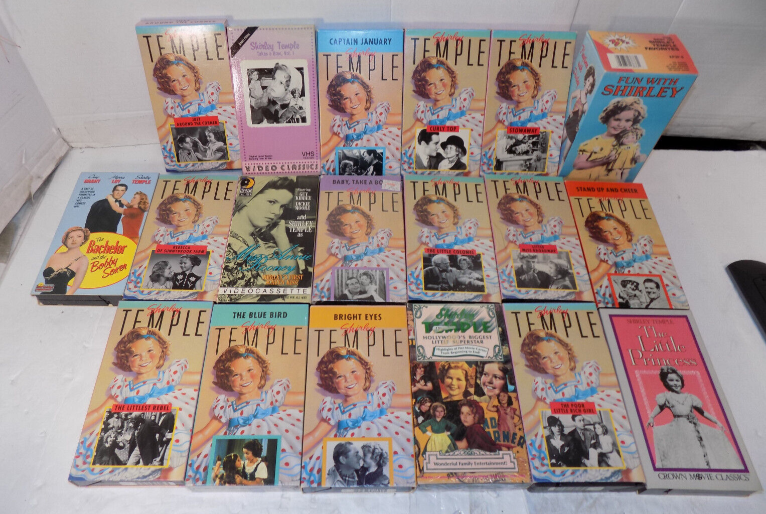 Lot of 21 Shirley Temple VHS Tapes. 3 of the tapes are still sealed. The rest of the tapes are in very good condition.