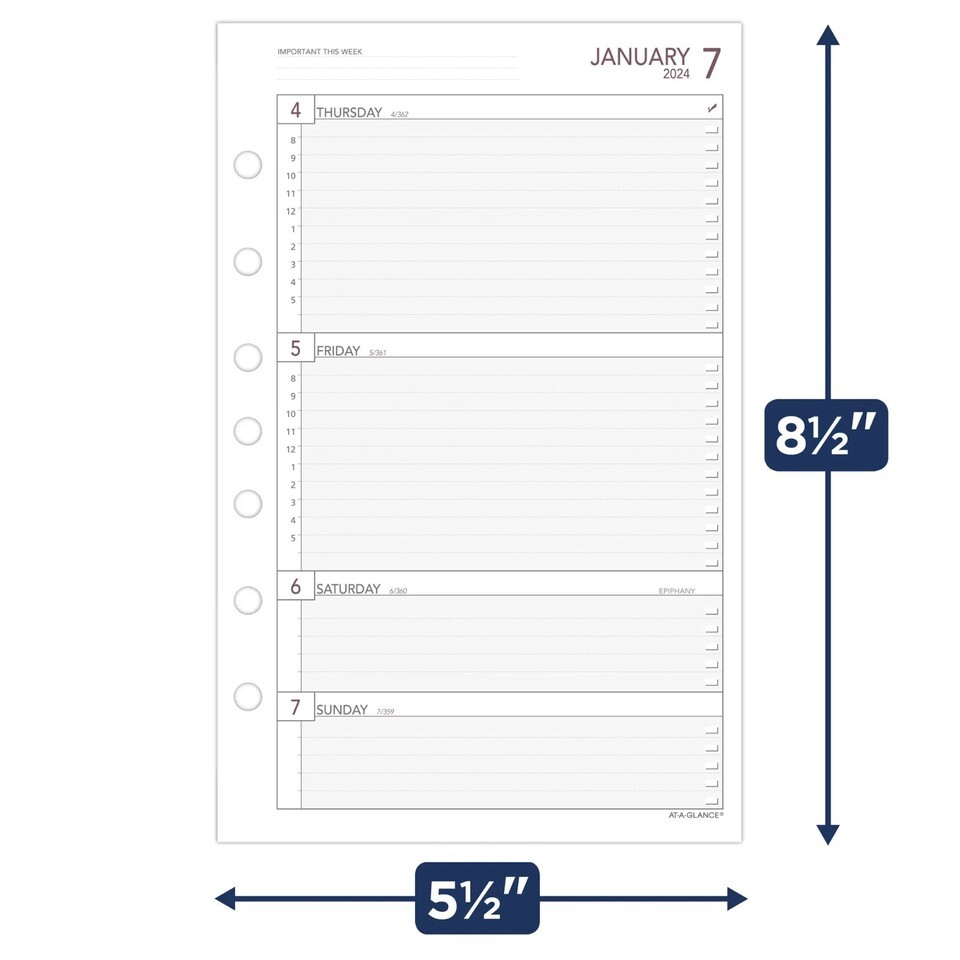 AT-A-GLANCE 2024 Weekly Planner Refill Loose-Leaf Desk Size Refillable Planners Refills
