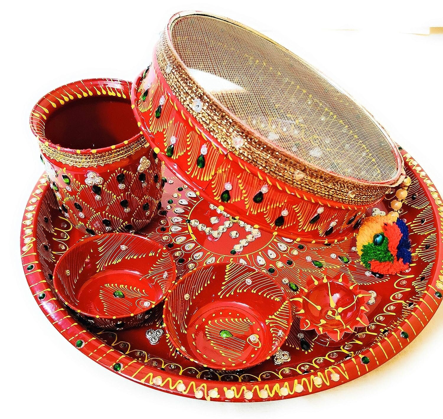 Usage - 1. Puja Arti Thali for Various Festivals. 2. Karva Chauth / Karwa Chauth Set for Celebrating Karva Chauth, 3. Useful for celebrating Indian Rituals.