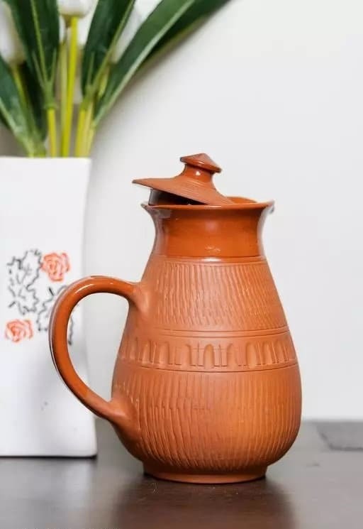 Handmade Terracotta Clay Classic Water jug with Lid Natural Earthen Clay Jug for