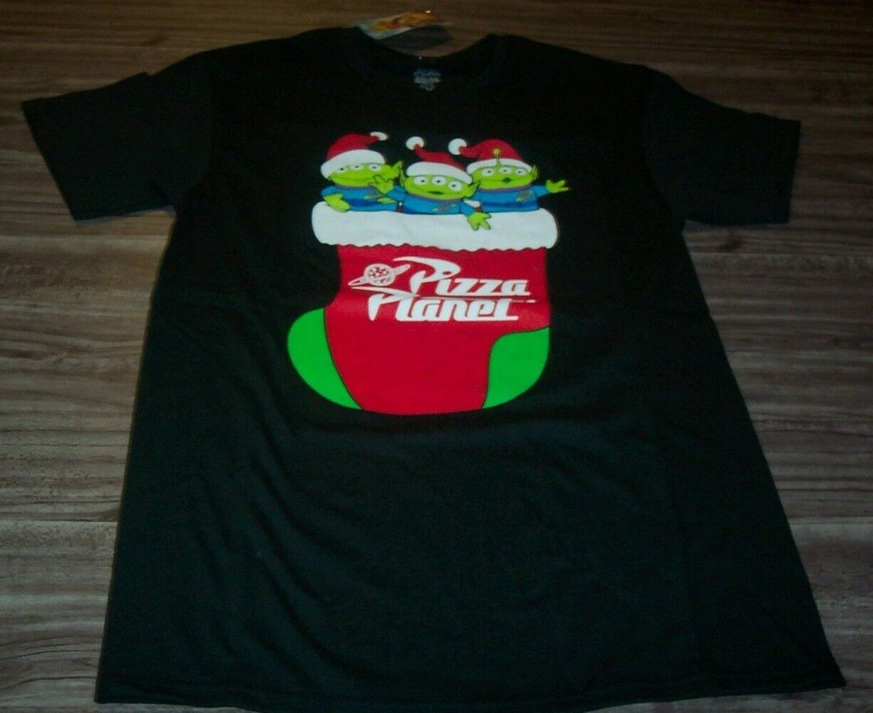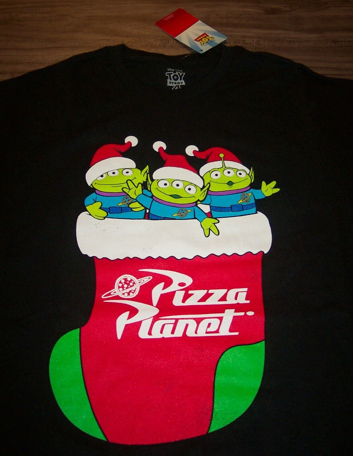 This is a Walt Disney TOY STORY ALIENS IN SANTA HATS CHRISTMAS Pizza Planet T-shirt. It is a size SMALL, and it is NEW with the tag. It is 17 inches from armpit to armpit and 28 1/2 inches in length. The Print is made to look vintage. Combine auctions to save on shipping. D2AG