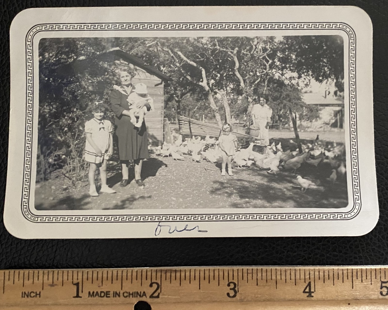 This listing features an amazing B W Photograph Grandma and Mom And Kids Hanging Out With The Chickens in 1926 (it's literally stamped 1926. Please see our closeup) It's an an incredible snapshot in time and in excellent condition.