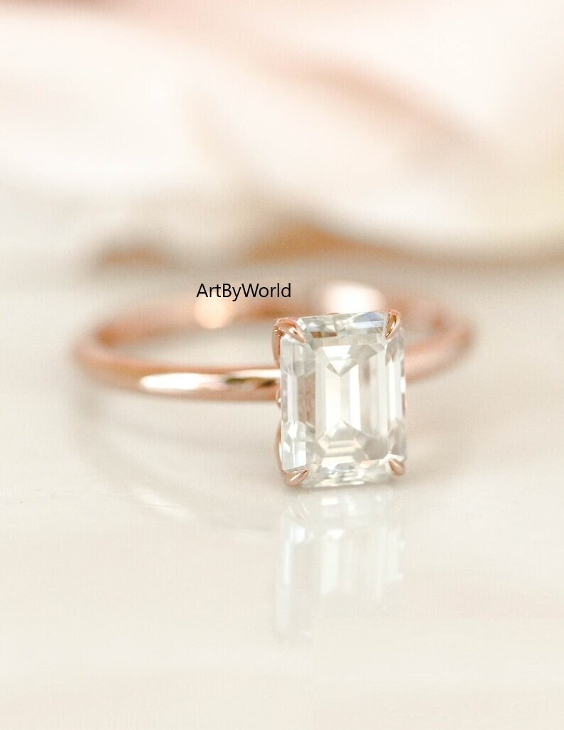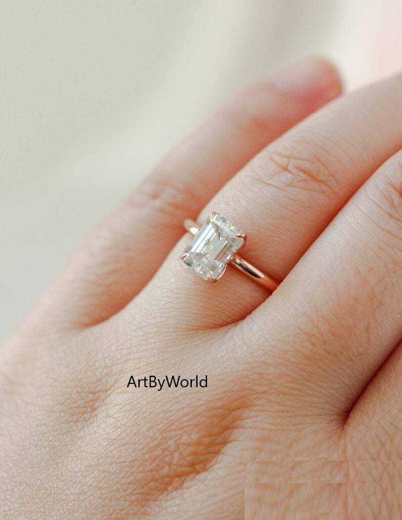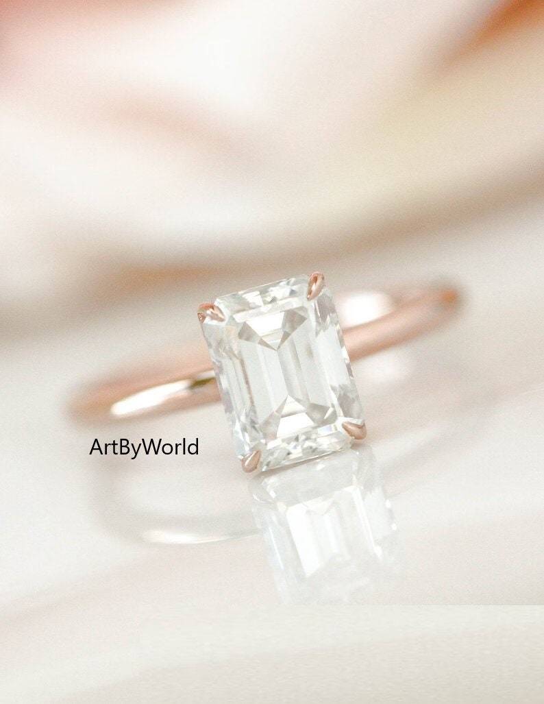 1.50 Carats Emerald Cut Lab Diamond Engagement Ring, Emerald Cut Moissanite Engagement Ring, Fit Flush Design, Harley, Emerald Cut Ring, Emerald Anniversary Ring, Statement Ring, Bridesmaid Gift, Rings for Women, Promise Ring, Product by ArtByWorld