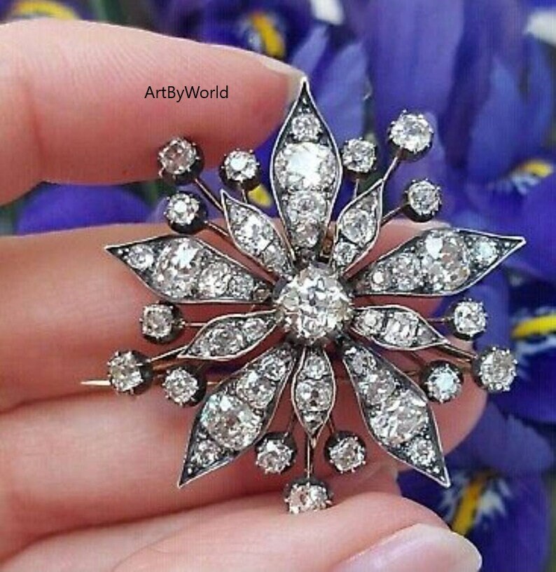 Beautiful flower star brooch Victorian period Mounted in silver, Art deco brooch, Star brooch, Edwardian brooch, Victorian engagement brooch
