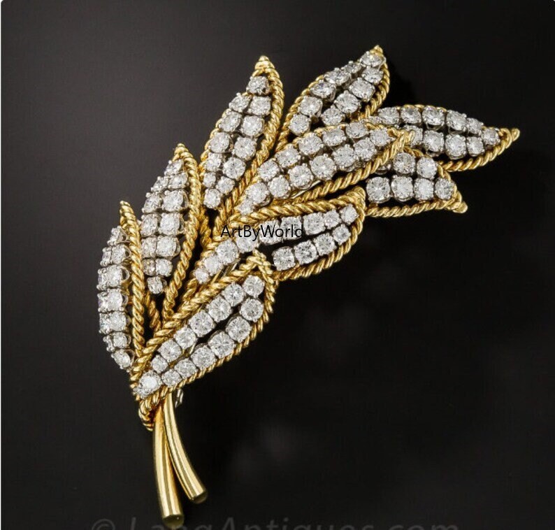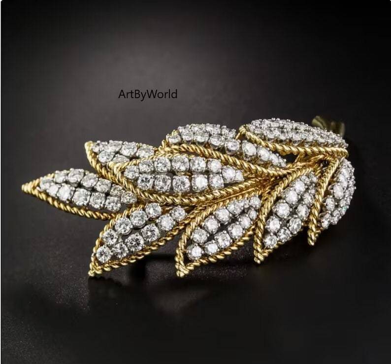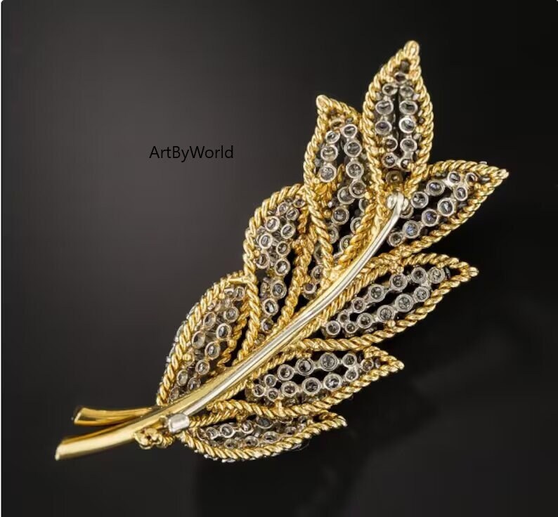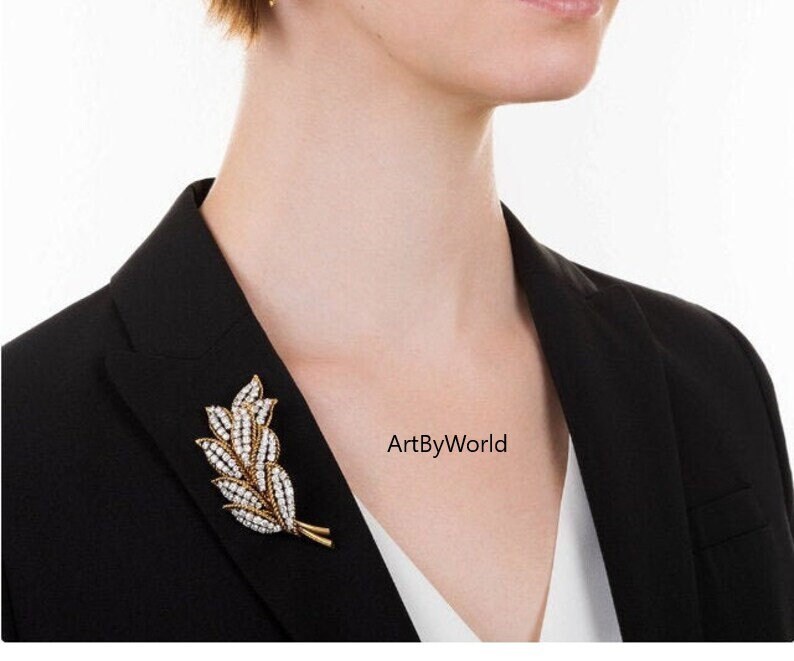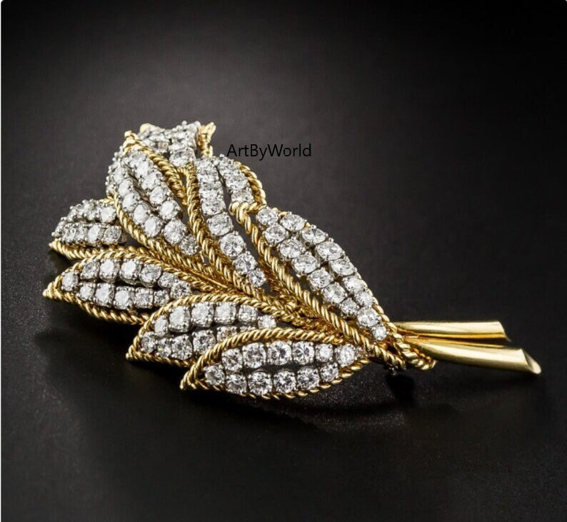 art deco Mid-Century Leaf Brooch, Promise Brooch, 925 sterling silver brooch, engagement brooch, Fancy Mens brooch in silver,Handmade Brooch