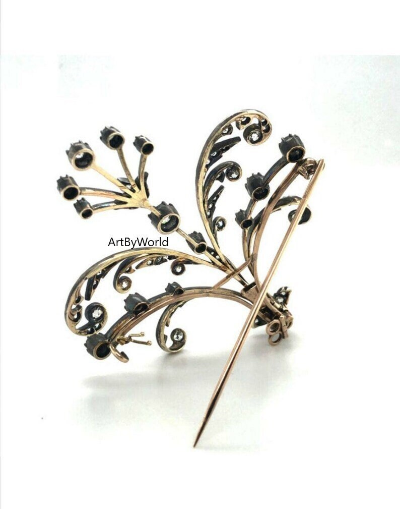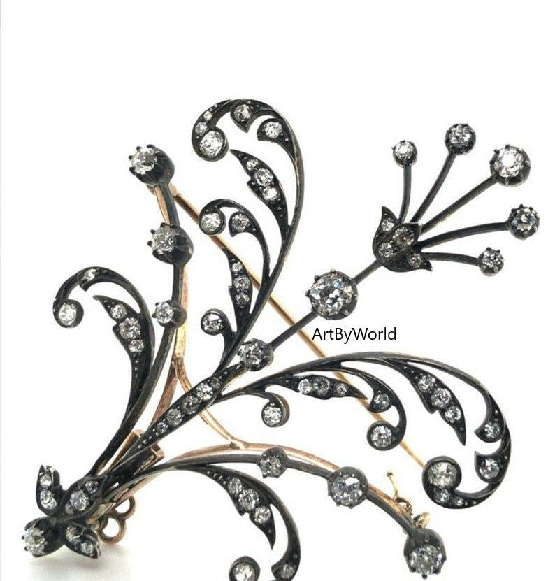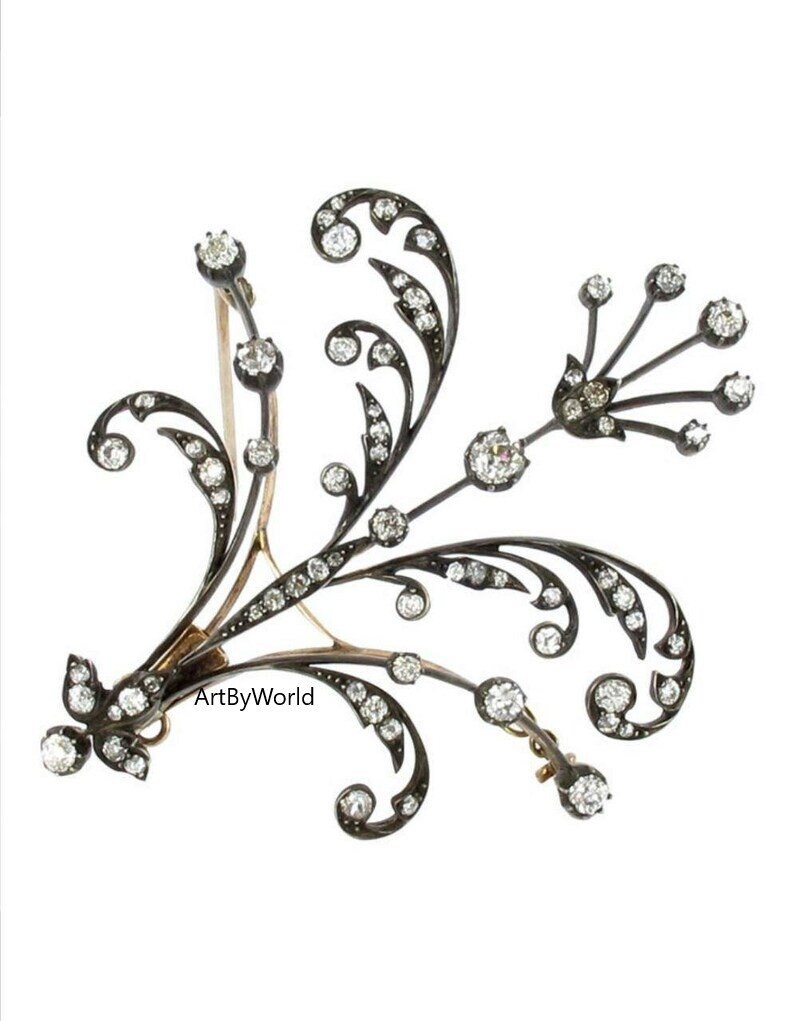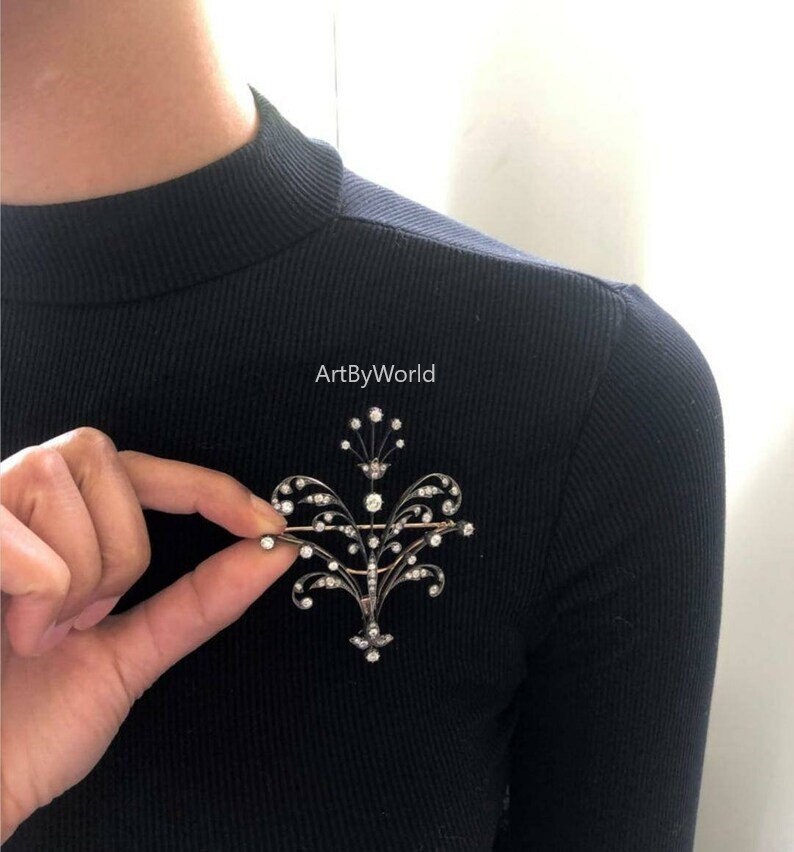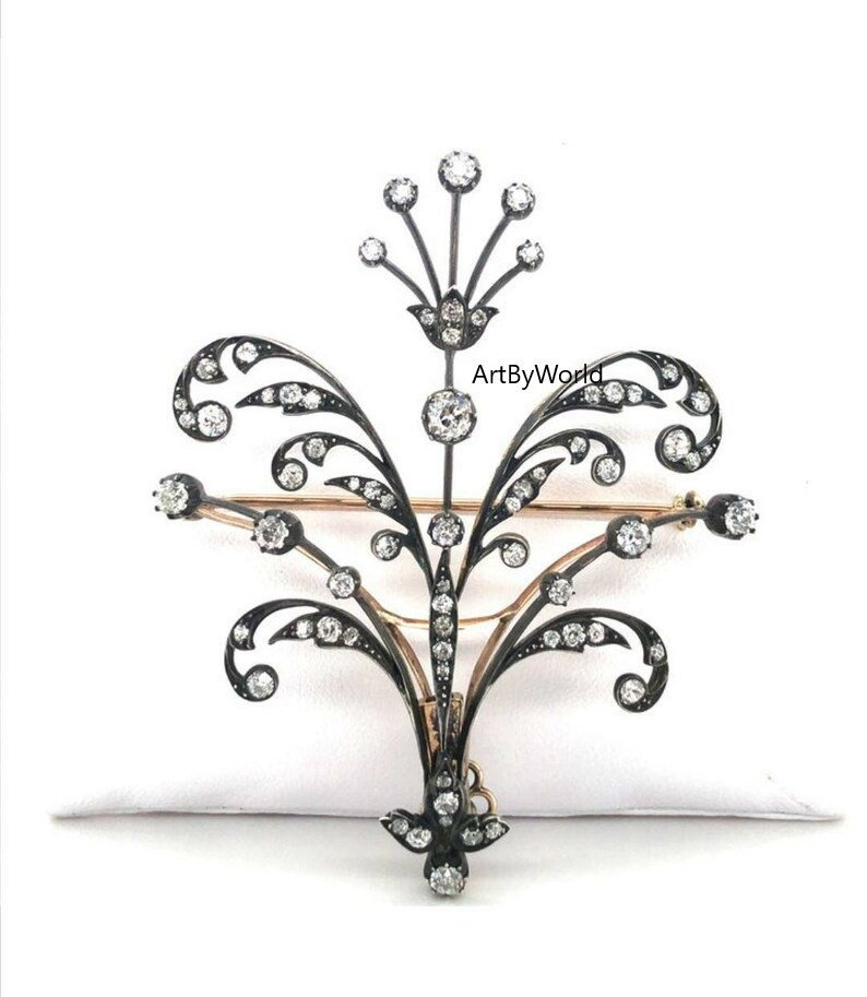 Antique Rose Cut Diamond Silver engagement Brooch,Handmade Brooch,Antique Brooch