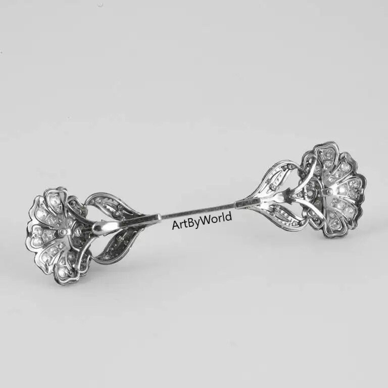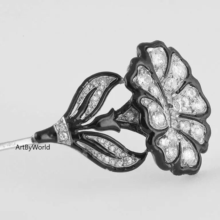 French 1920s Art Deco Diamond Enamel and Platinum Jabot Pin, Edwardian Brooch, Promise Brooch, Fancy Mens brooch in silver, Onyx Pin