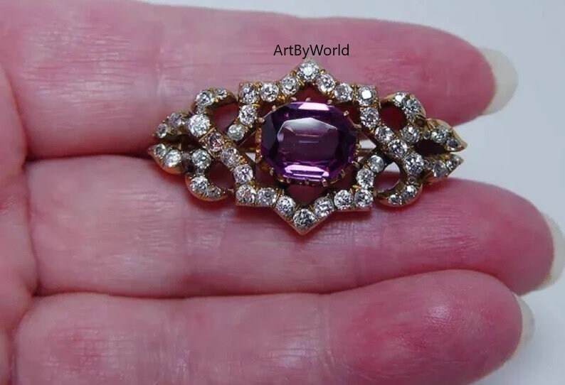 Victorian Rose Cut Diamond Silver Brooch, Edwardian Brooch, Engagement Brooch
