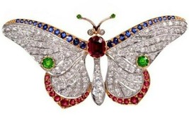 Rose Cut Diamond Butterfly 2.25ct Diamond, Multi Color Gemstones, Antique Butterfly Brooch pin, Victorian Diamond Brooch Edwardian Brooch