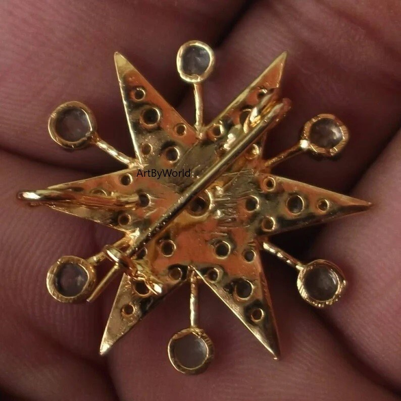 Antique Rose Cut Diamond Silver Star Shaped Brooch, Art deco brooch, Star brooch