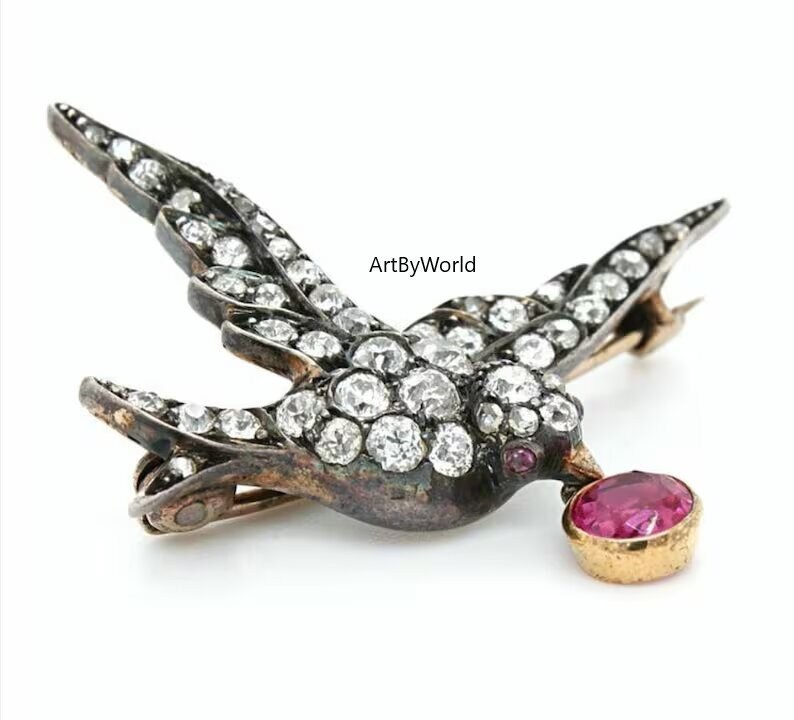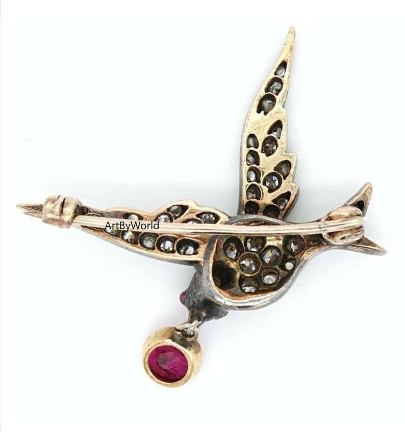 Antique Rose Cut Diamond Bird Brooch, Silver Purity 92.5, Art Deco Brooch