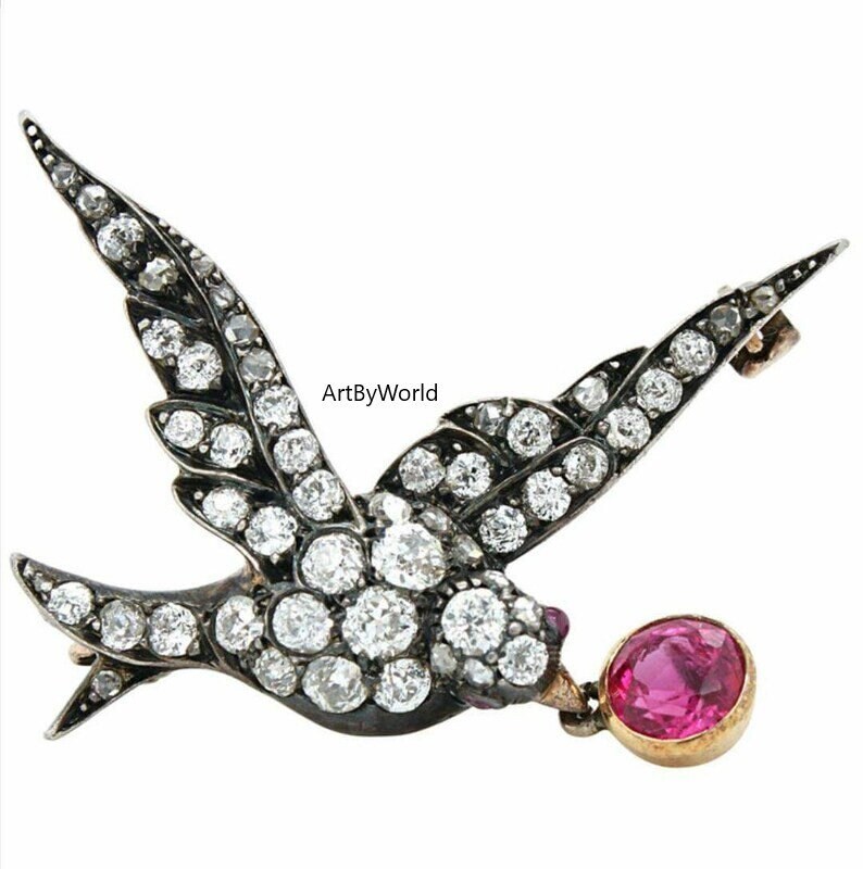 Antique Rose Cut Diamond Bird Brooch, Silver Purity 92.5, Art Deco Brooch, Edwardian Brooch, Fancy Mens brooch in silver, Handmade Brooch