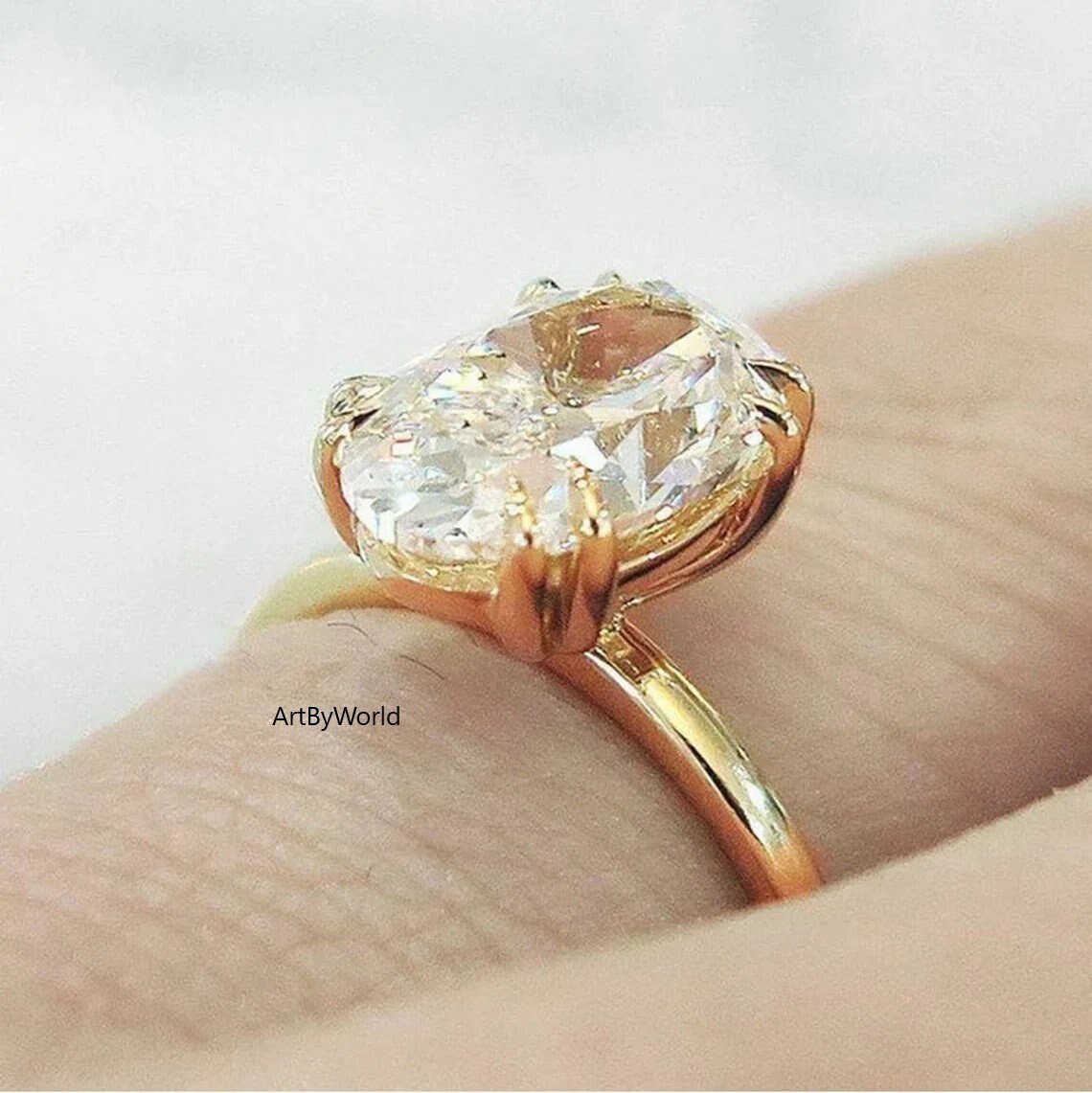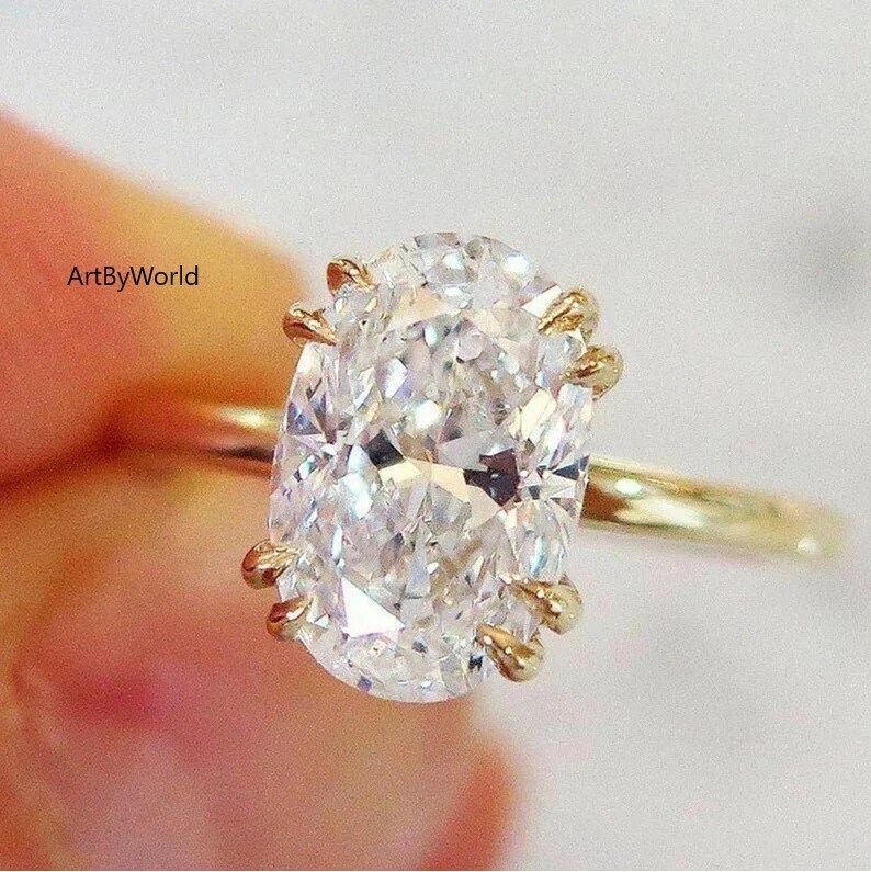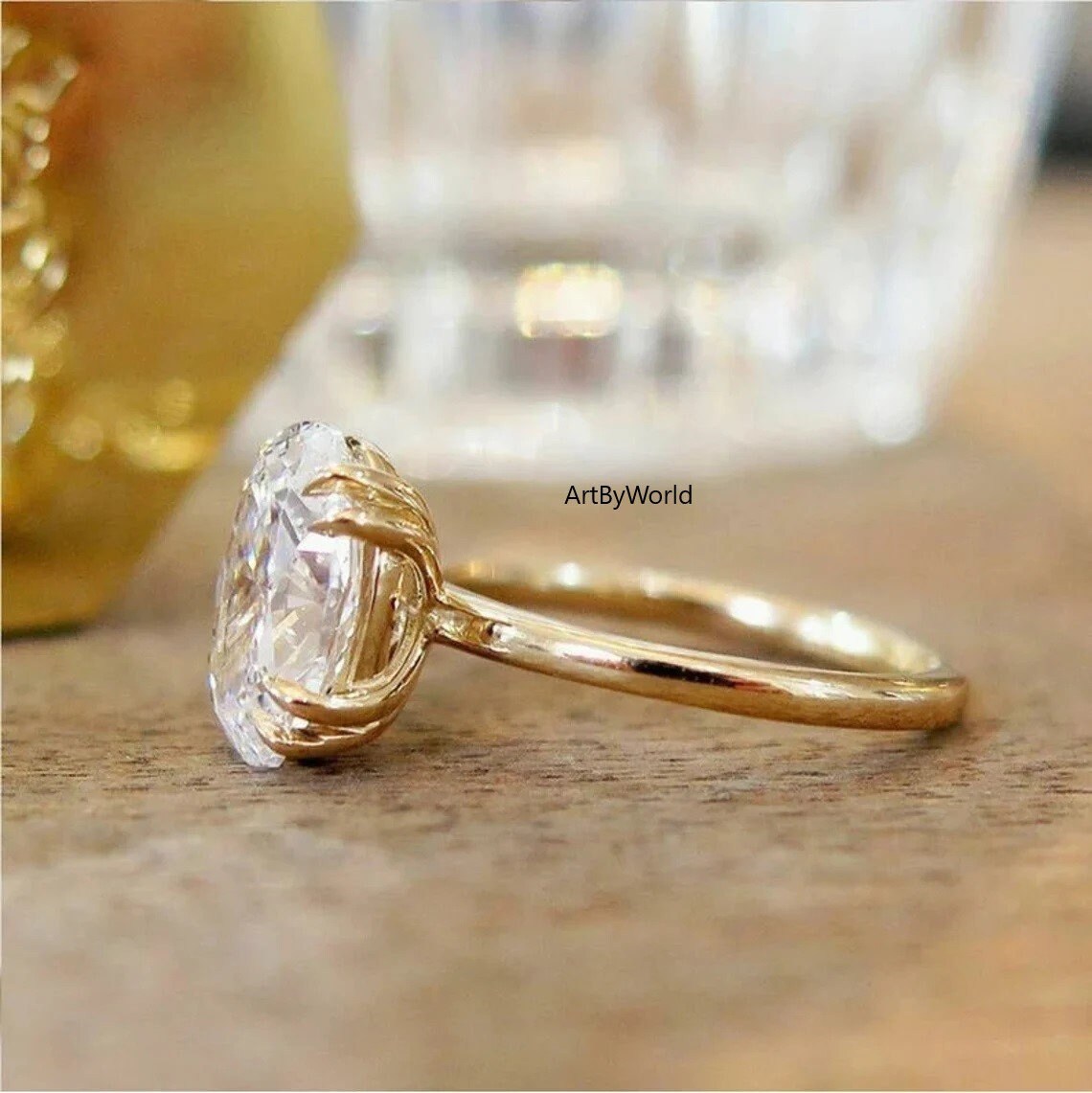 Oval Moissanite Engagement Ring 3.50 CT Oval Moissanite Wedding Ring 14K Yellow