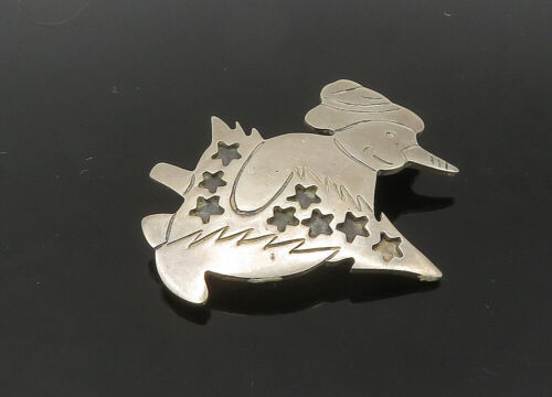925 Sterling Silver - Vintage Snowman & Christmas Tree Brooch Pin - BP8455