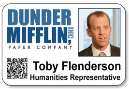 Toby Flenderson Dunder Mifflin THE OFFICE magnet Fastener Name Badge Halloween C