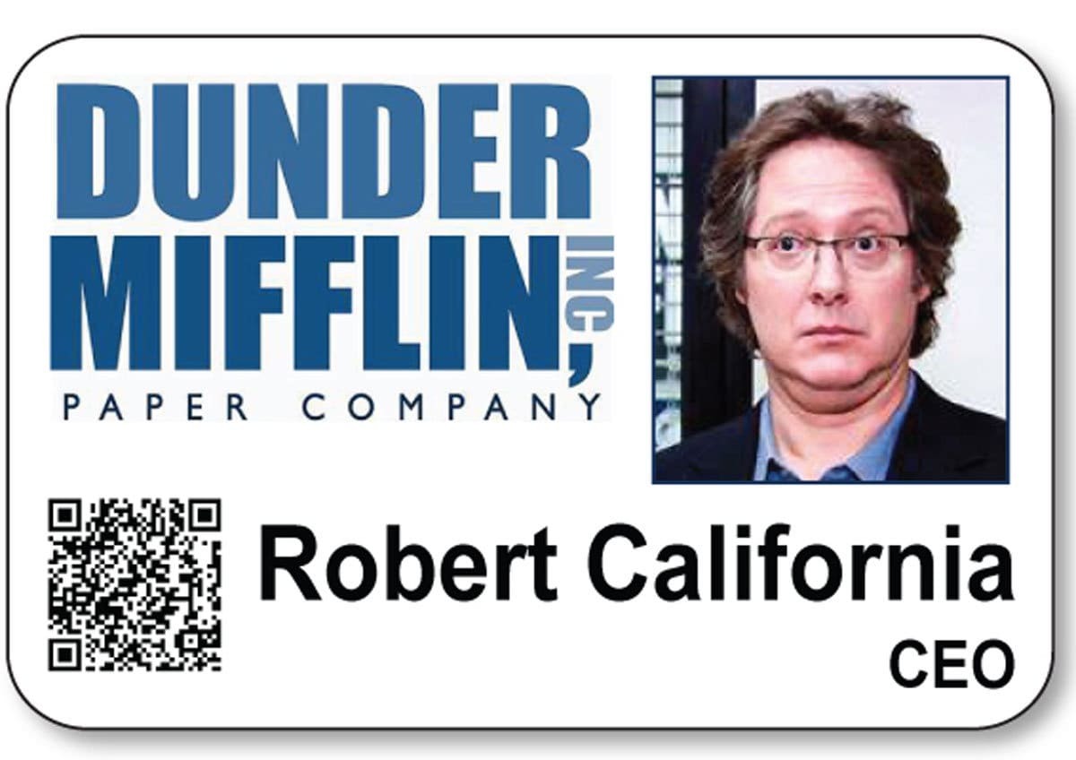 Robert California Dunder Mifflin THE OFFICE magnet Fastener Name Badge Halloween