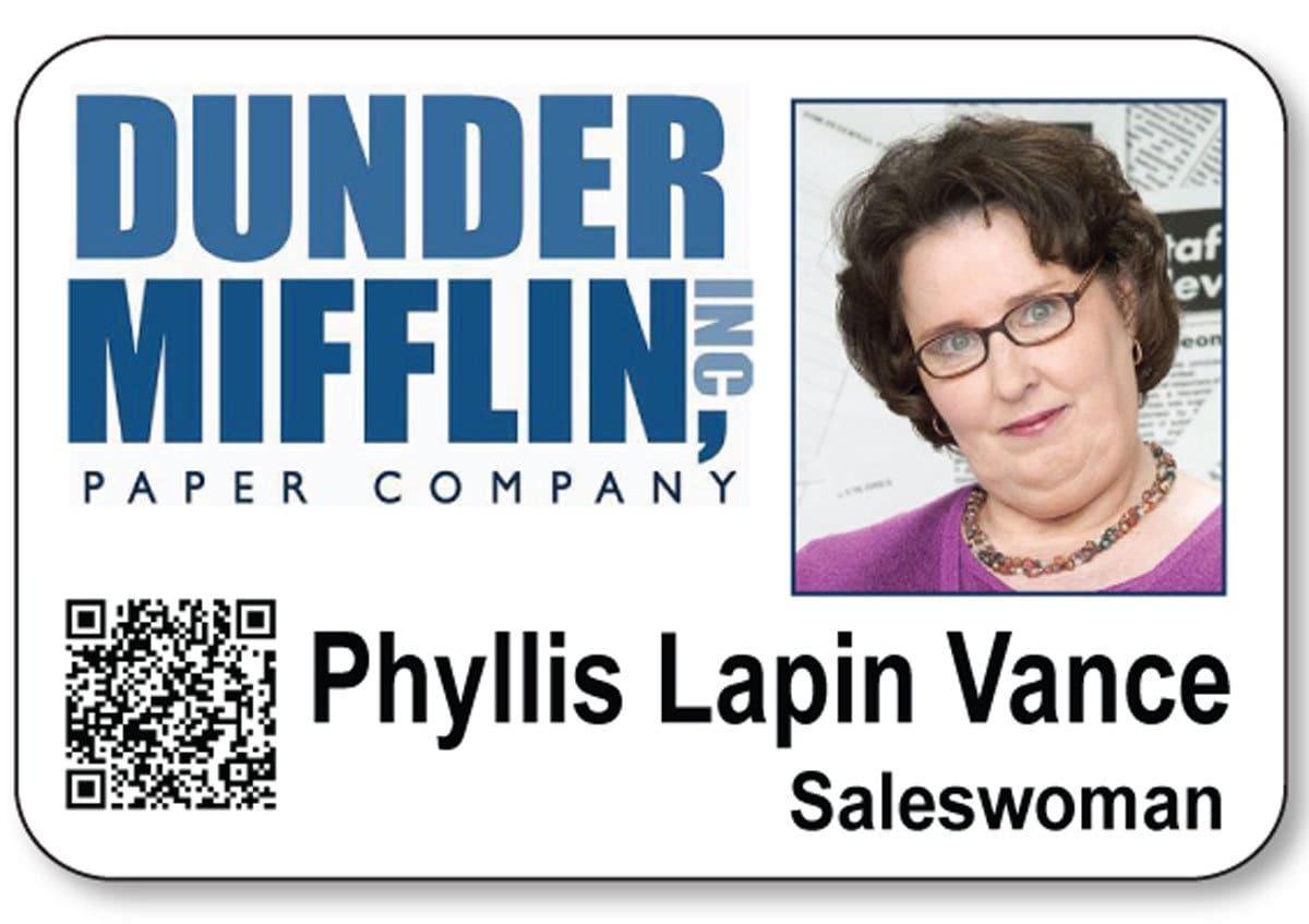 Phyllis Lapin Vance Dunder Mifflin THE OFFICE magnet Fastener Name Badge Hallowe