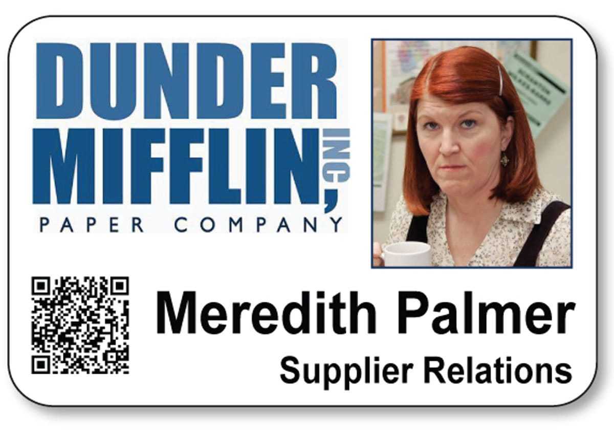 Meredith Palmer Dunder Mifflin THE OFFICE pin Fastener Name Badge Halloween Cost