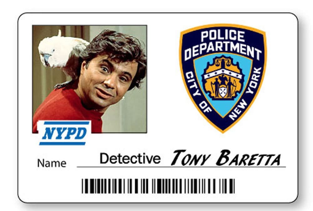 This listing is for a name badge tag ID card for the Bird loving (FRED) Detective TONY BARETTA FROM THE POPULAR 1970's TV SHOW. Your badge will arrive with a pin fastener on the badge. This badge is a plastic rectangle with white background, rounded corners and measures approx. 2" x 3". This badge is printed in full color with a clear overlay that protects the print for a durable long lasting badge. YOUR BADGE WILL SHIP WITHIN 24 HOURS FREE FIRST CLASS MAIL, US ONLY. Upgrades to shipping speed are available at checkout if needed.THESE ITEMS ARE PERFECT FOR HALLOWEEN COSTUMES OR FUN COSPLAY! We also carry a premium econo BLANK name badge line for businesses with high turn over employees (these badges can be personalized with our crystal clear labels.)