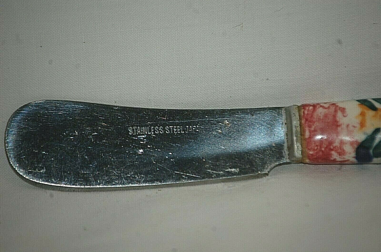 Stainless Steel Cheese Spreader Knives Ceramic Floral Handles Set of 4