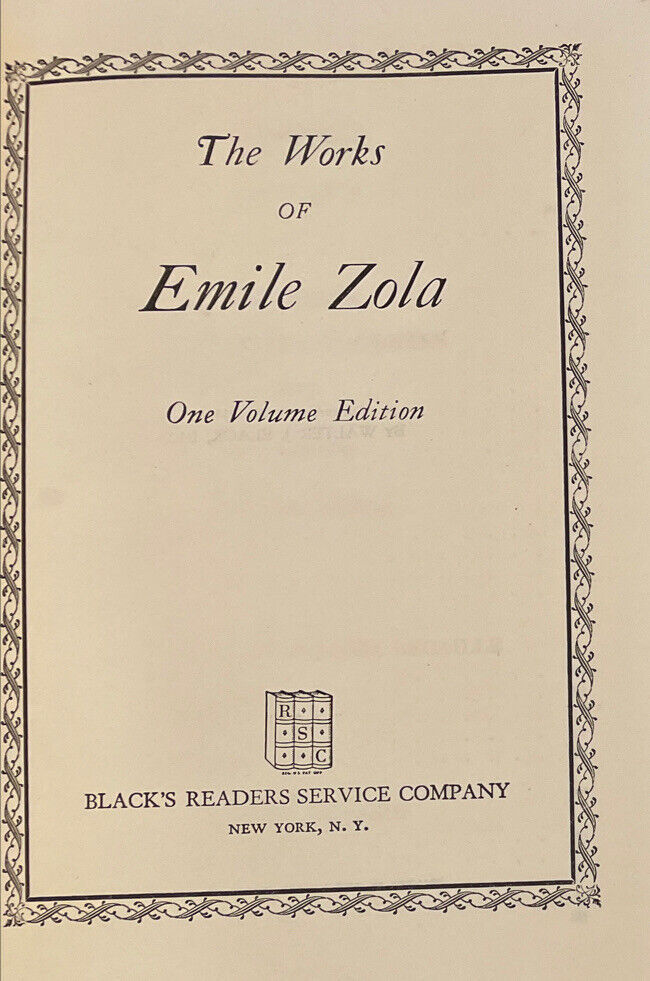 Vintage Antique " The Works De Zola " Livre One Volume Edition, 1928/1938