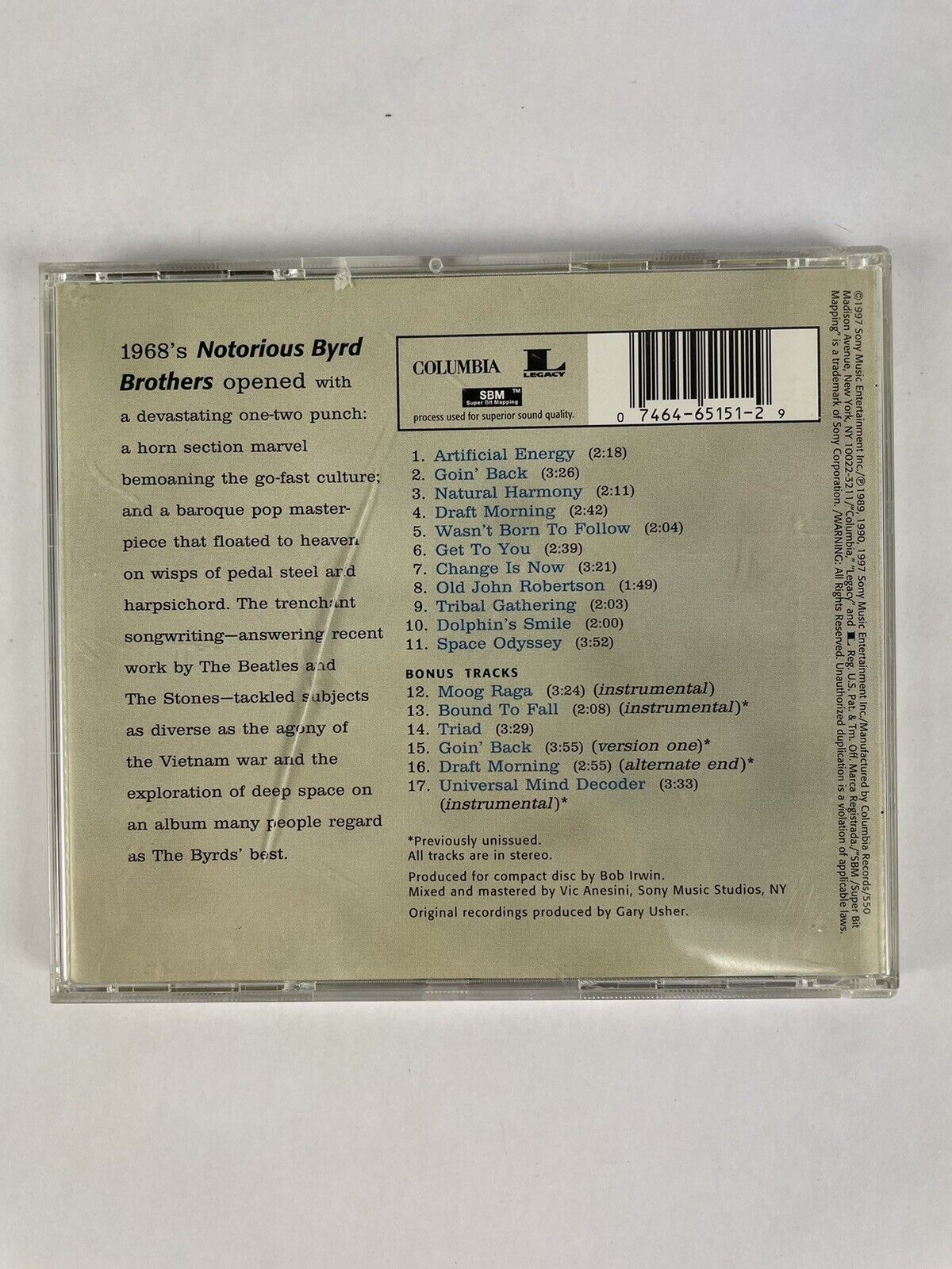 Notorious Byrd Brothers - The Byrds (1997, Sony Music) CD ---Excellent Condition ---Professionally packaged for fast safe USPS shipping