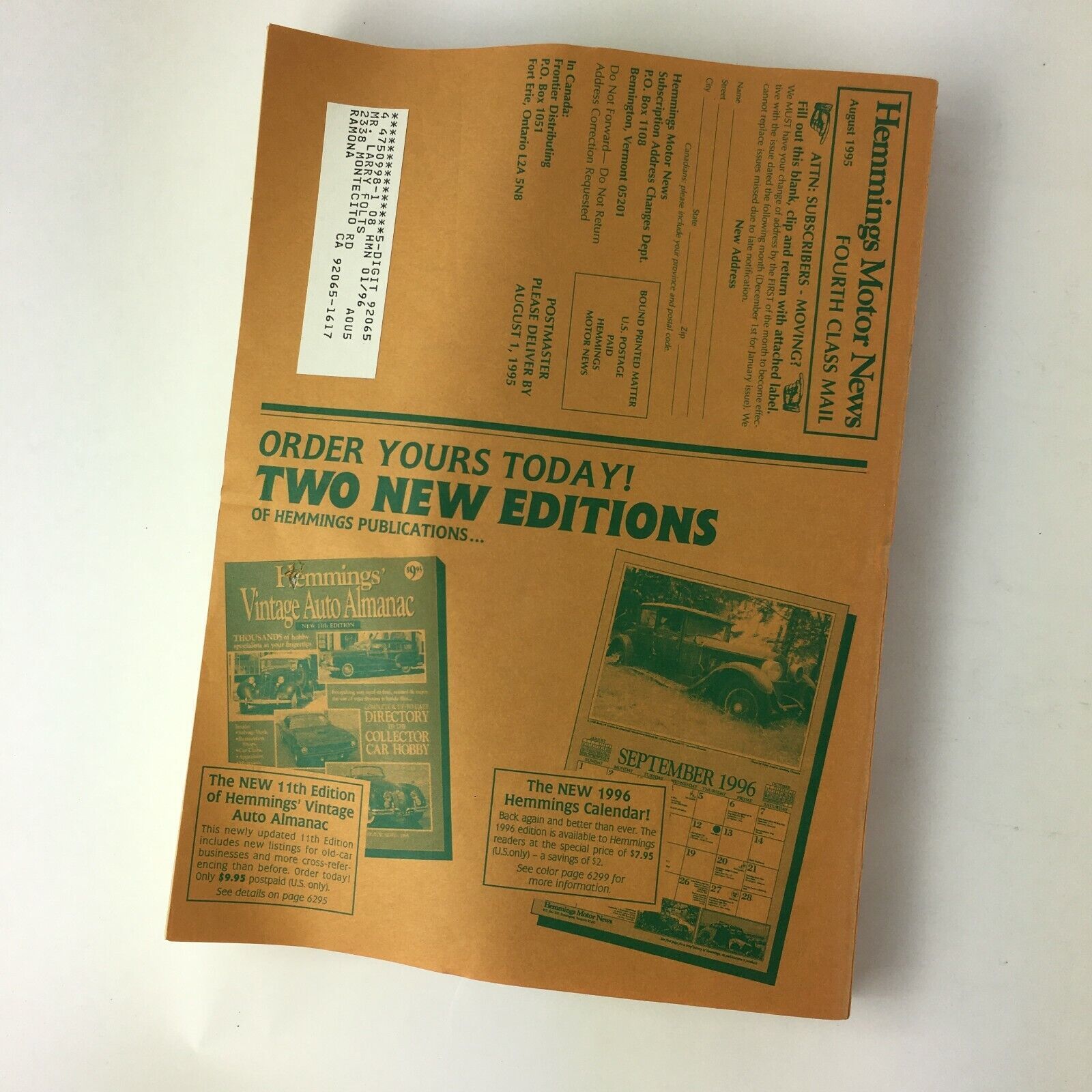 -Featuring: August 1995 Hemmings Motor News 11th Edition Vintage Auto Almanac AntiqueVintage -Magazine is complete and in nice condition -Showing only light to moderate wear