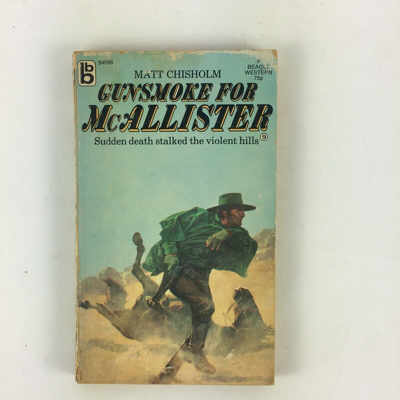-Featuring: Matt Chisholm Gunsmoke for McAllister Sudden death Stalked the Violent hills -Book is complete and in nice condition -Showing only light to moderate wear