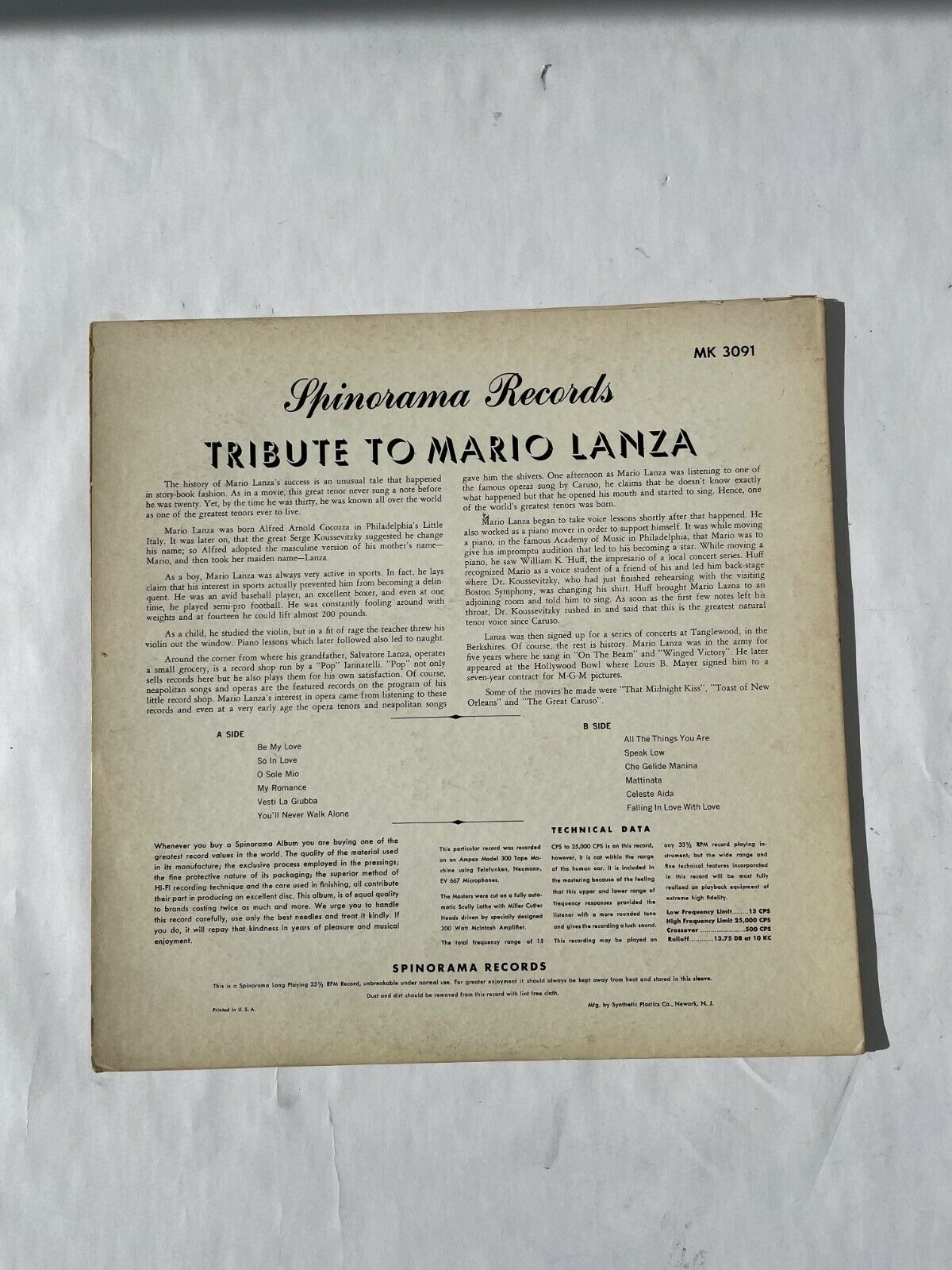 - Featuring: A Tribute To Mario Lanza Sung By Enzo Stuarti Vinyl Record Q10