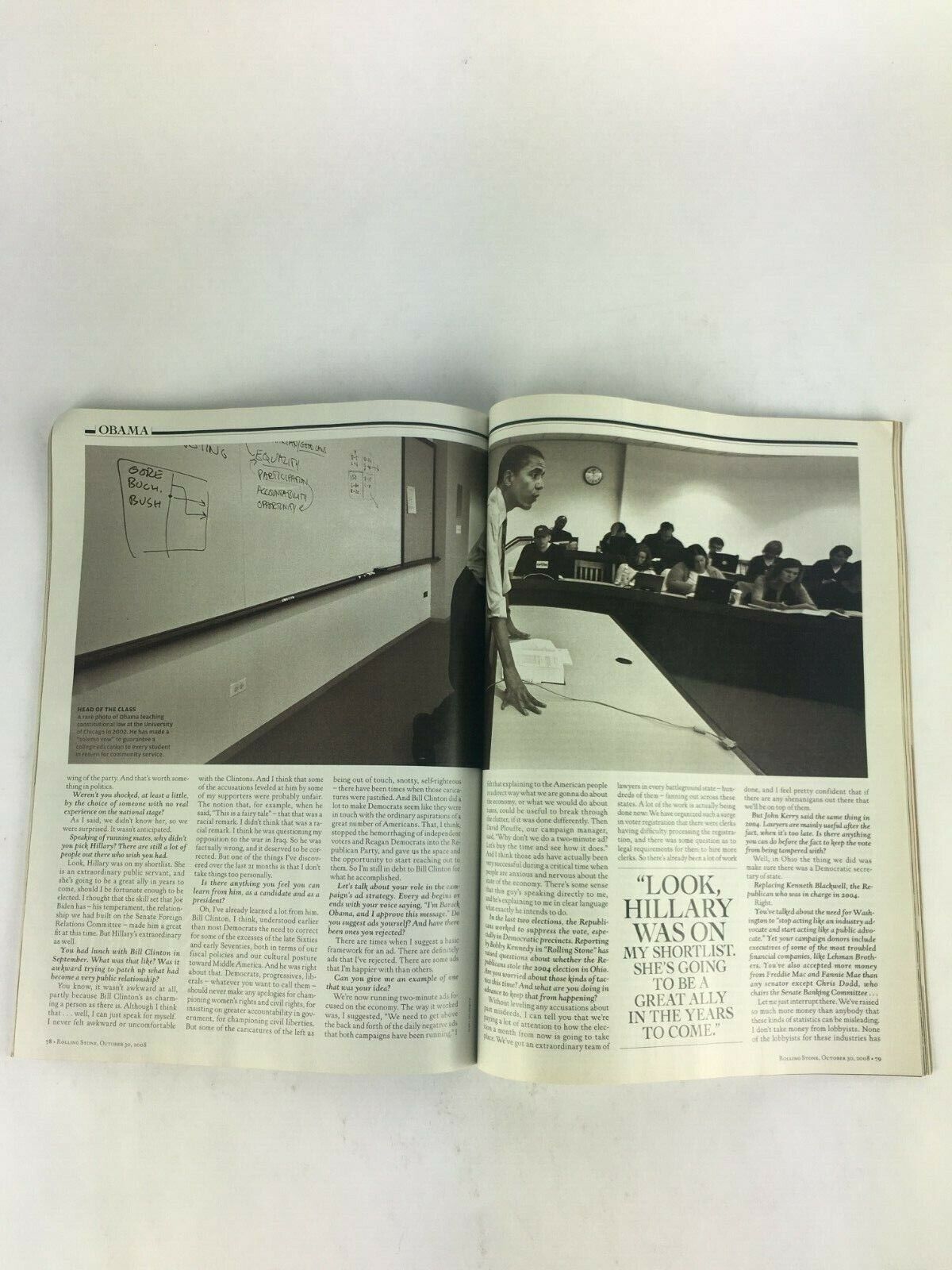 October 2008 RollingStone Magazine Barack Obama School of Rock