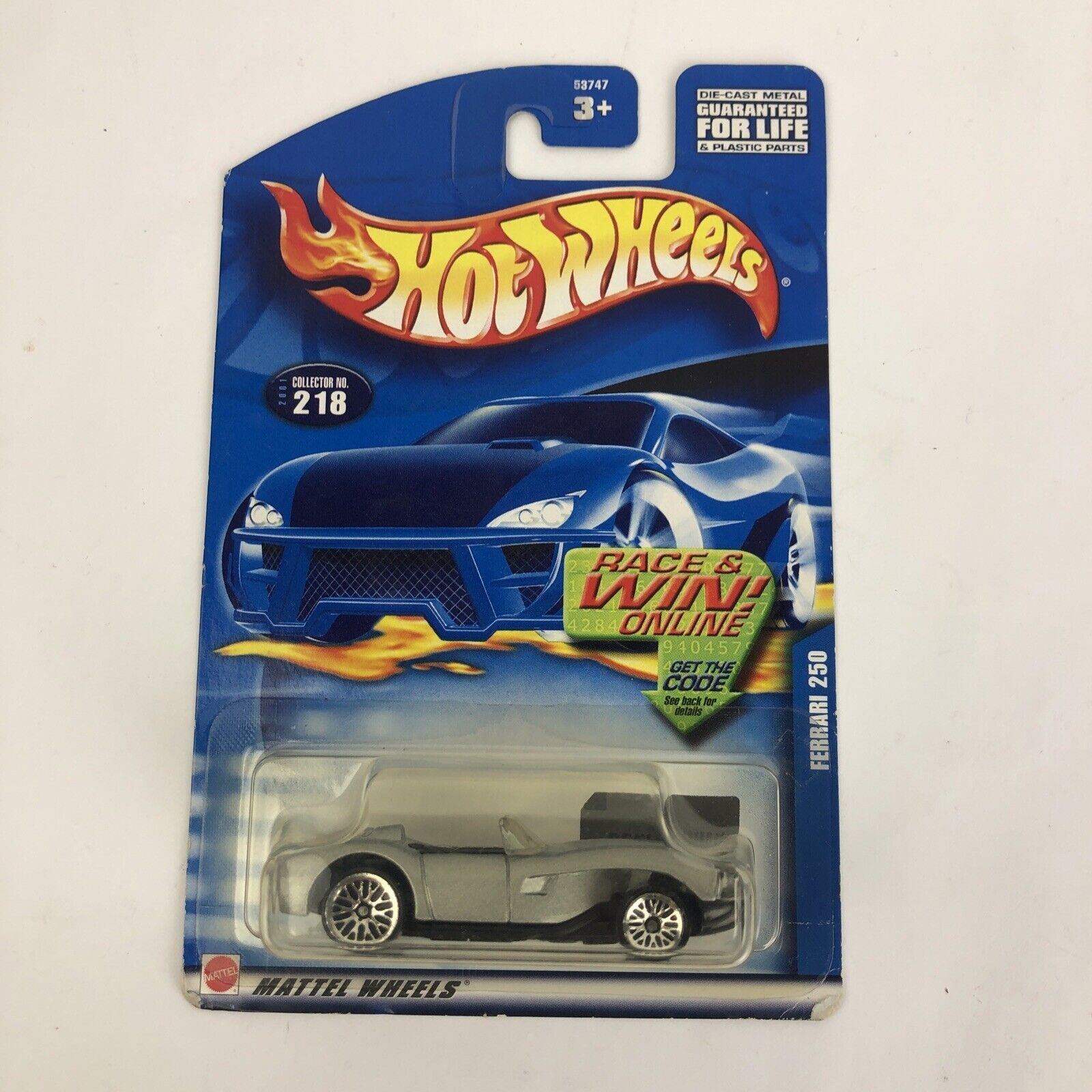 MATTEL HOT WHEELS 2001 FERRARI 250 COLLECTORS No. #218 SILVER NIB