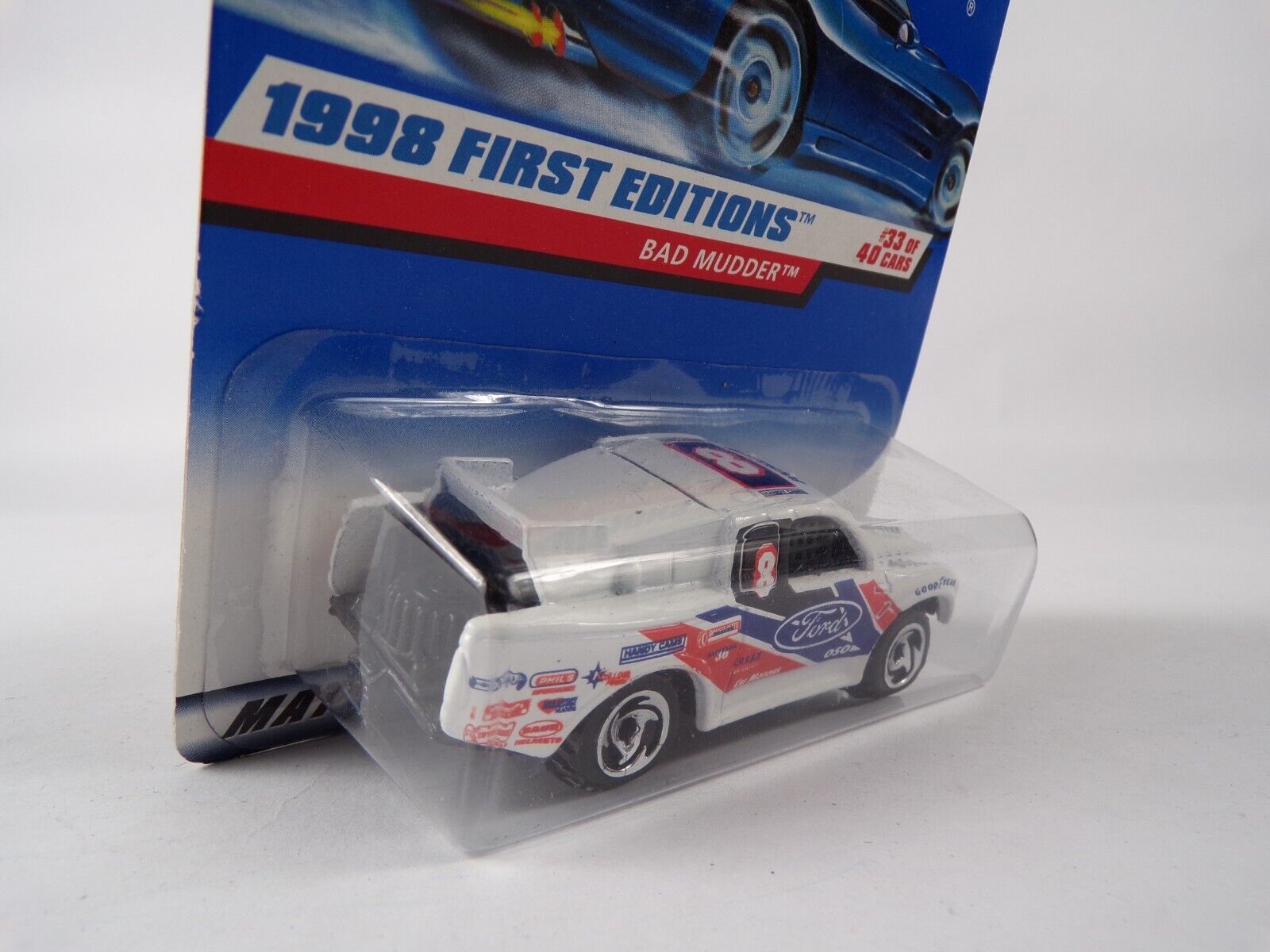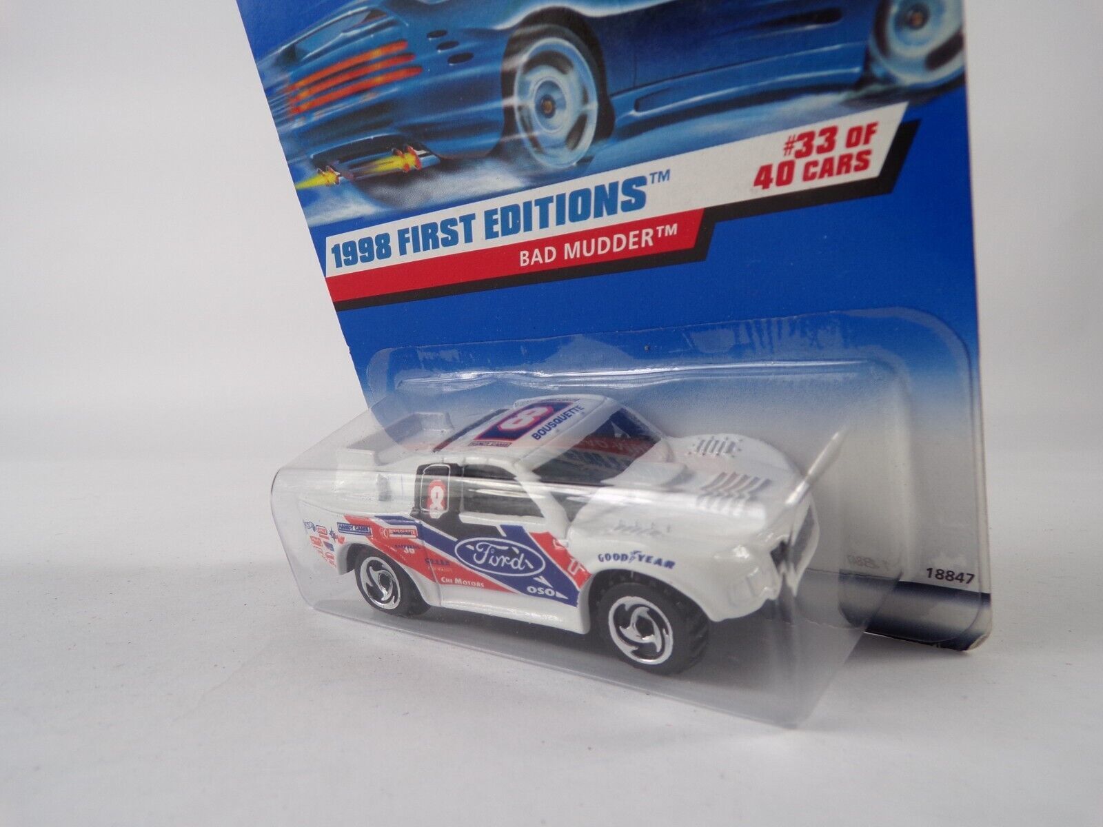- Featuring : Van / Sports Car / Truck / Hot Wheels 1998 First Edtions Bad Mudder #H8 - The Bad Mudder is a 1997 Ford F-150 Baja Truck driven by Robby Gordon.