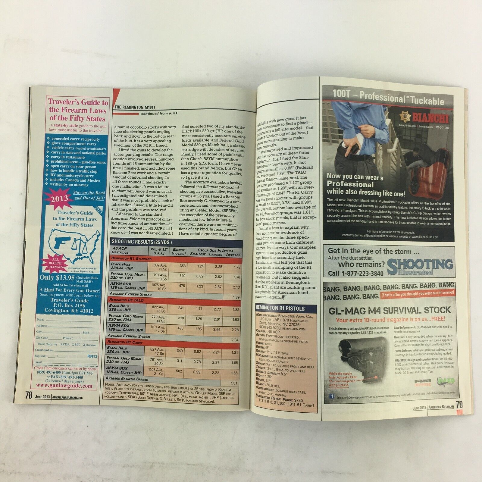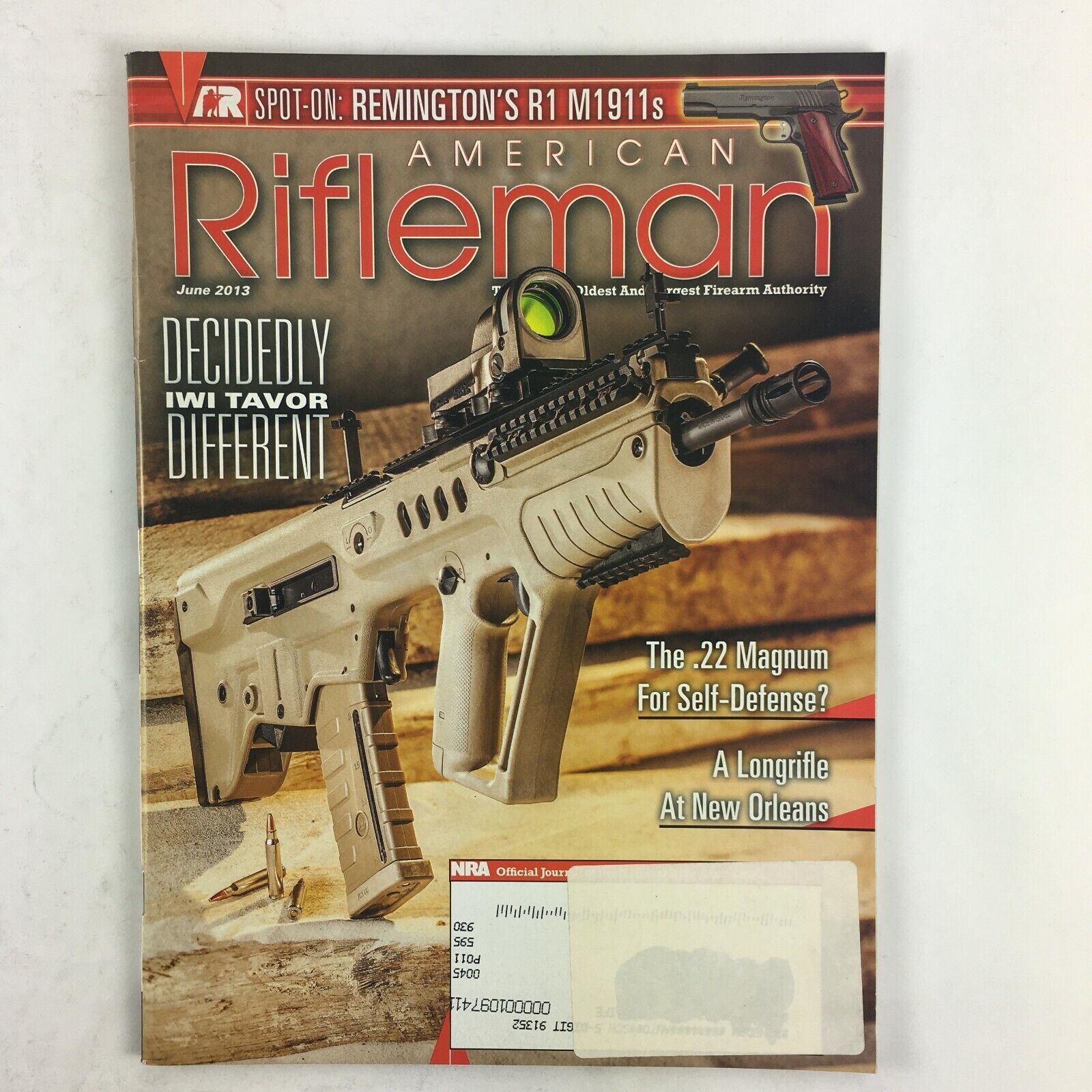 -Featuring: June 2013 American Rifleman Magazine The .22 Magnum For Self-Defense ? R1 M1911s -Magazine is complete and in nice condition -Showing only light to moderate wear