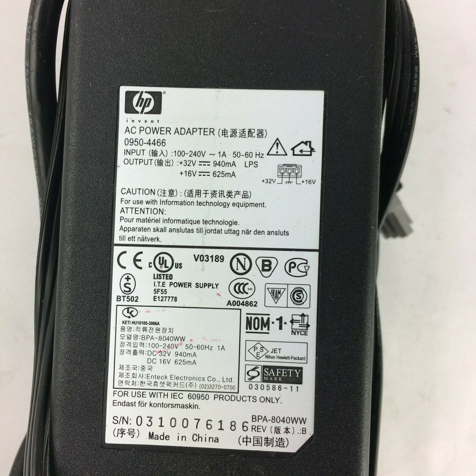 Genuine HP0950-4466 0310076186 Output 16V/32V 625mA/940mA PowerSupply Adapter A2