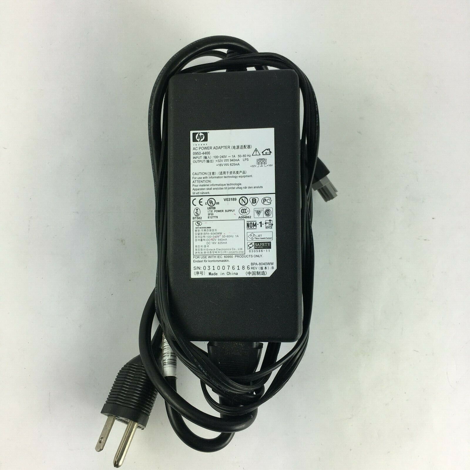 -Featuring: Geniune HP 0950-4466 Output 16V/32V 625mA/940mA Power Supply Adapter A1 -Adapter is complete and in nice condition - Tested and Working Condition