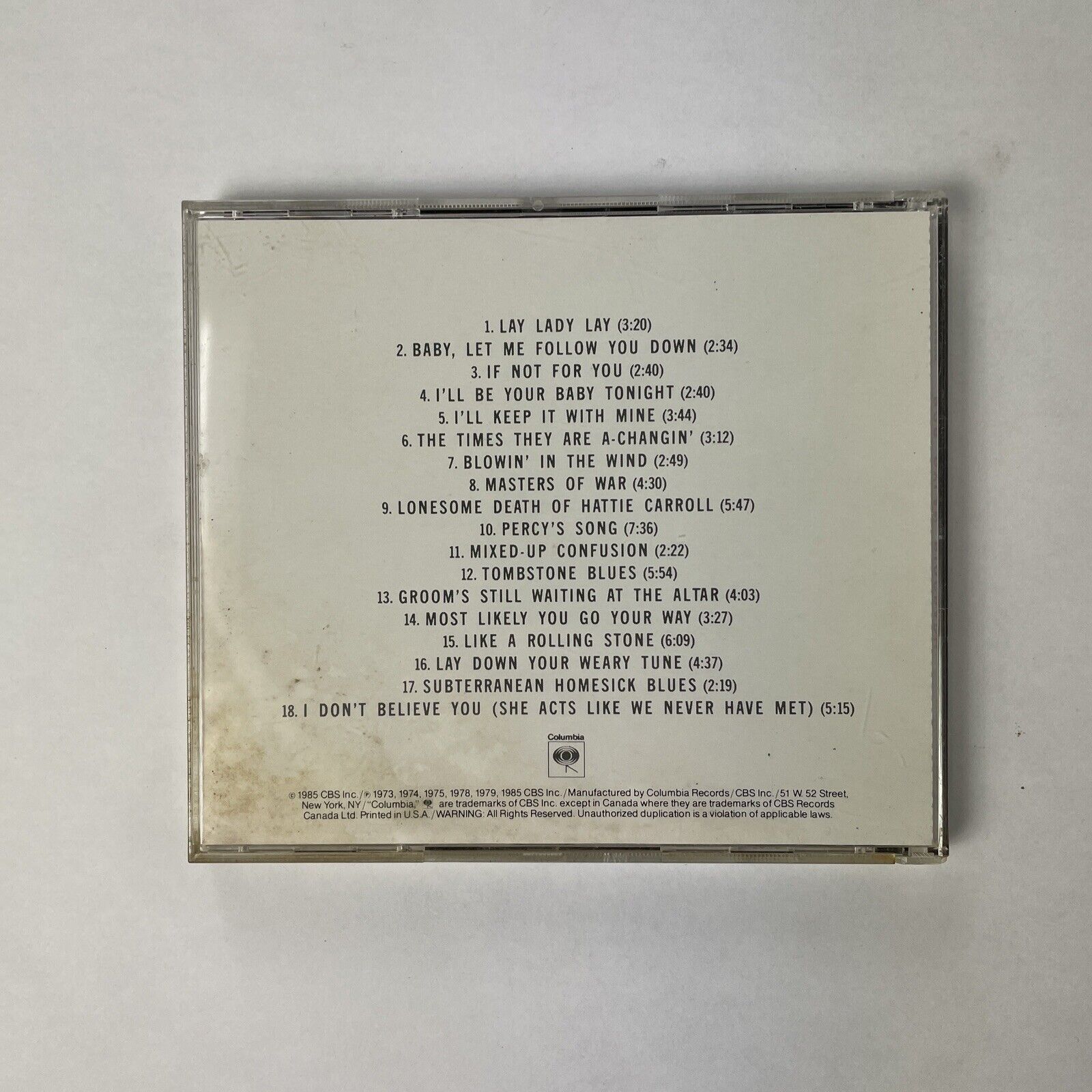 Bob Dylan - Biograph 1 CD ---Excellent condition ---Professionally packaged for safe shipping with USPS