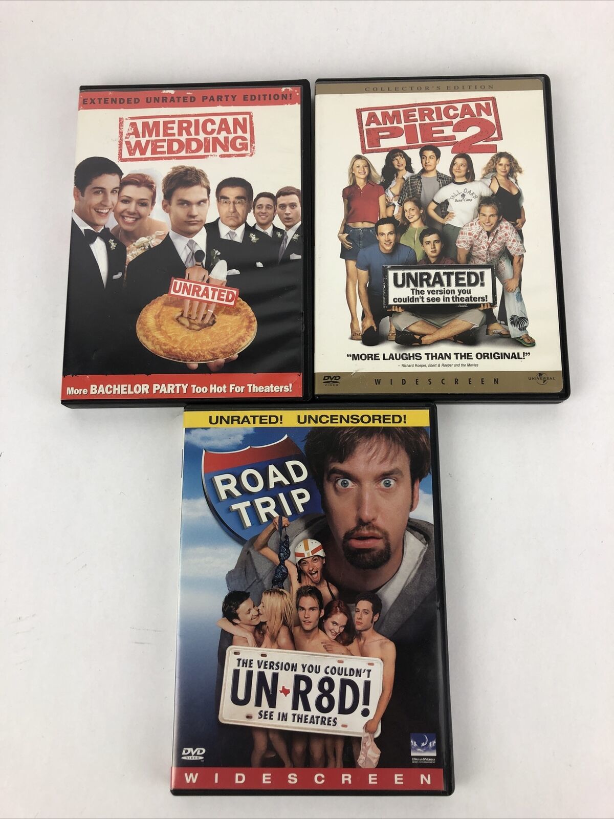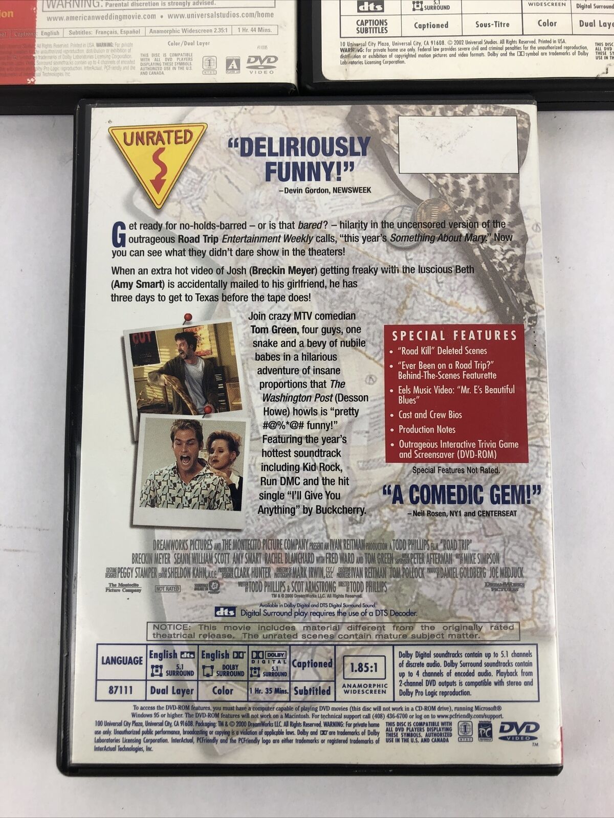 Road Trip , American Pie 2 , American Wedding (DVD, Unrated Version) 3 X DVD Lot