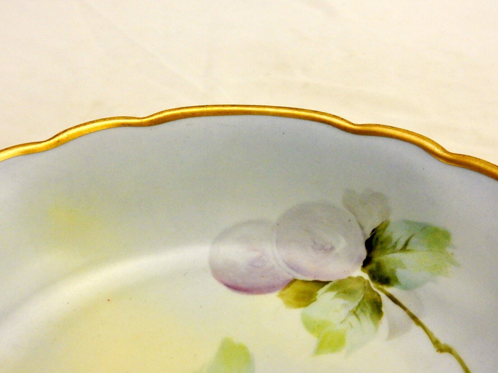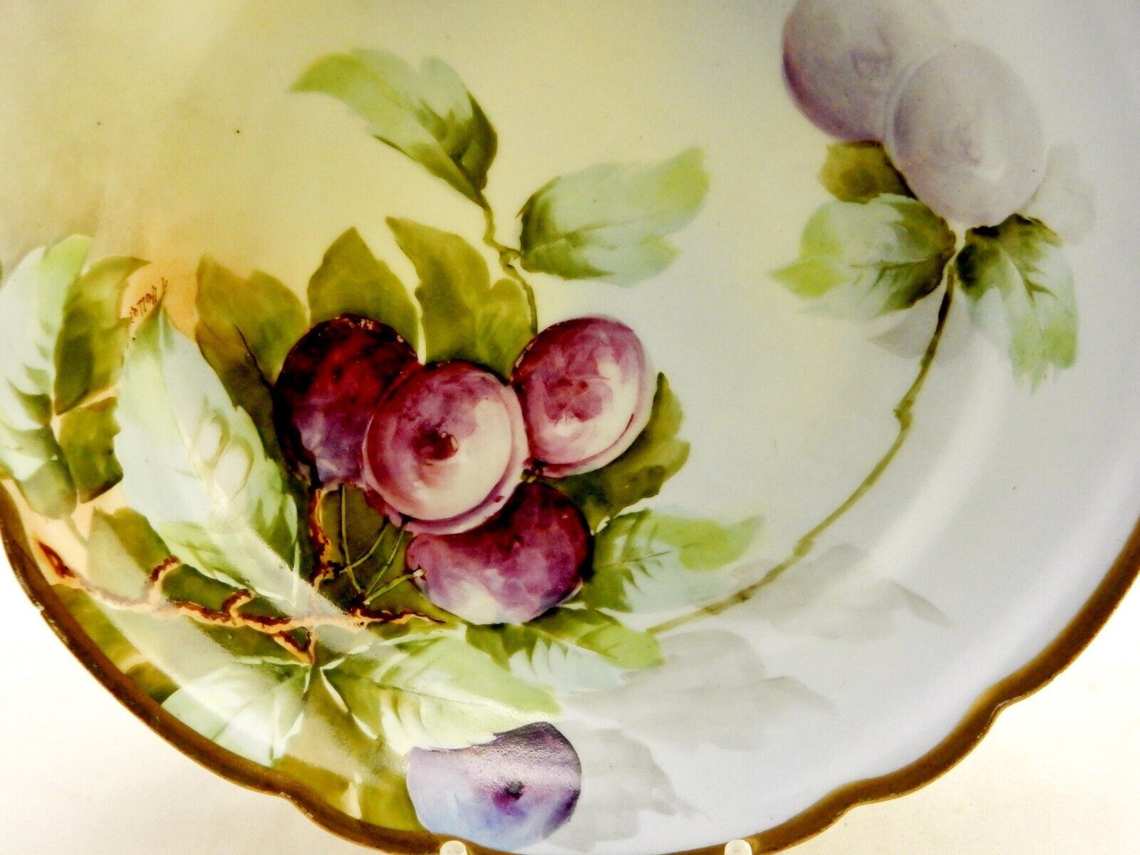 Vienna Hand Painted Vegetable Bowl, Hanging Plums, Scalloped, Vintage Porcelain