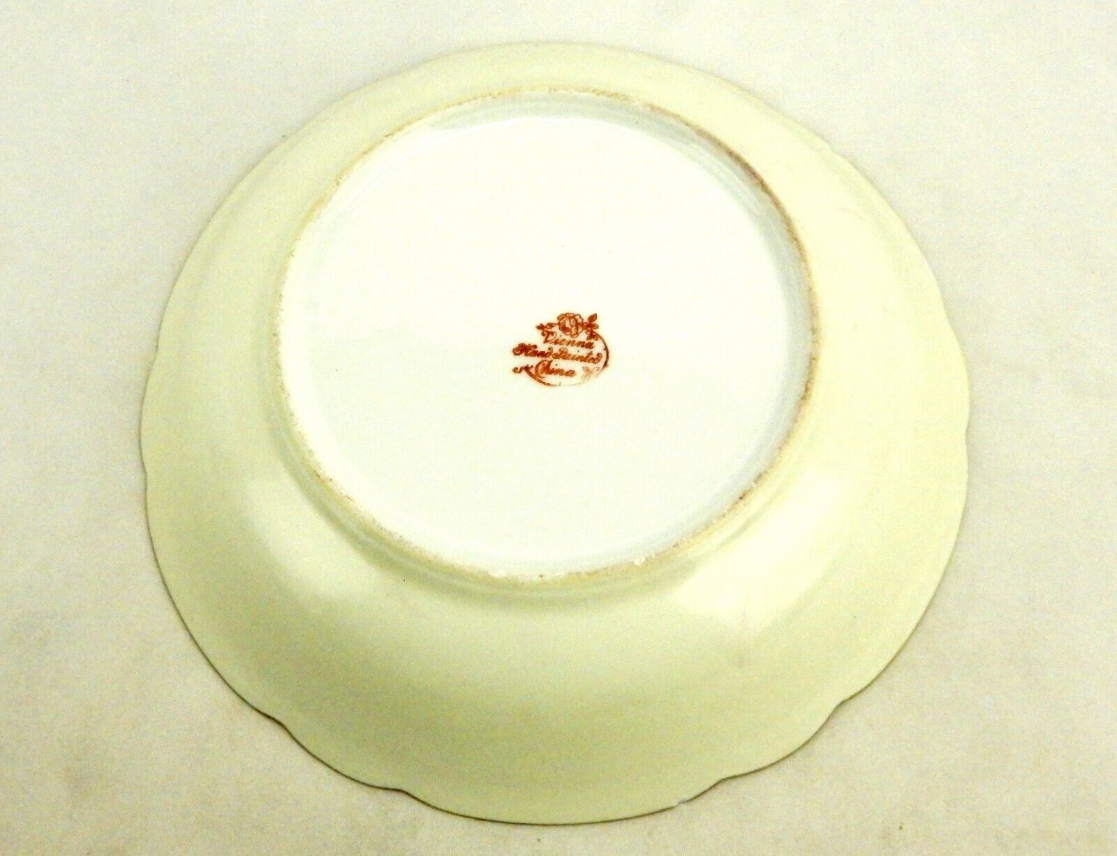 Scalloped edge on bowl with gold painted rim