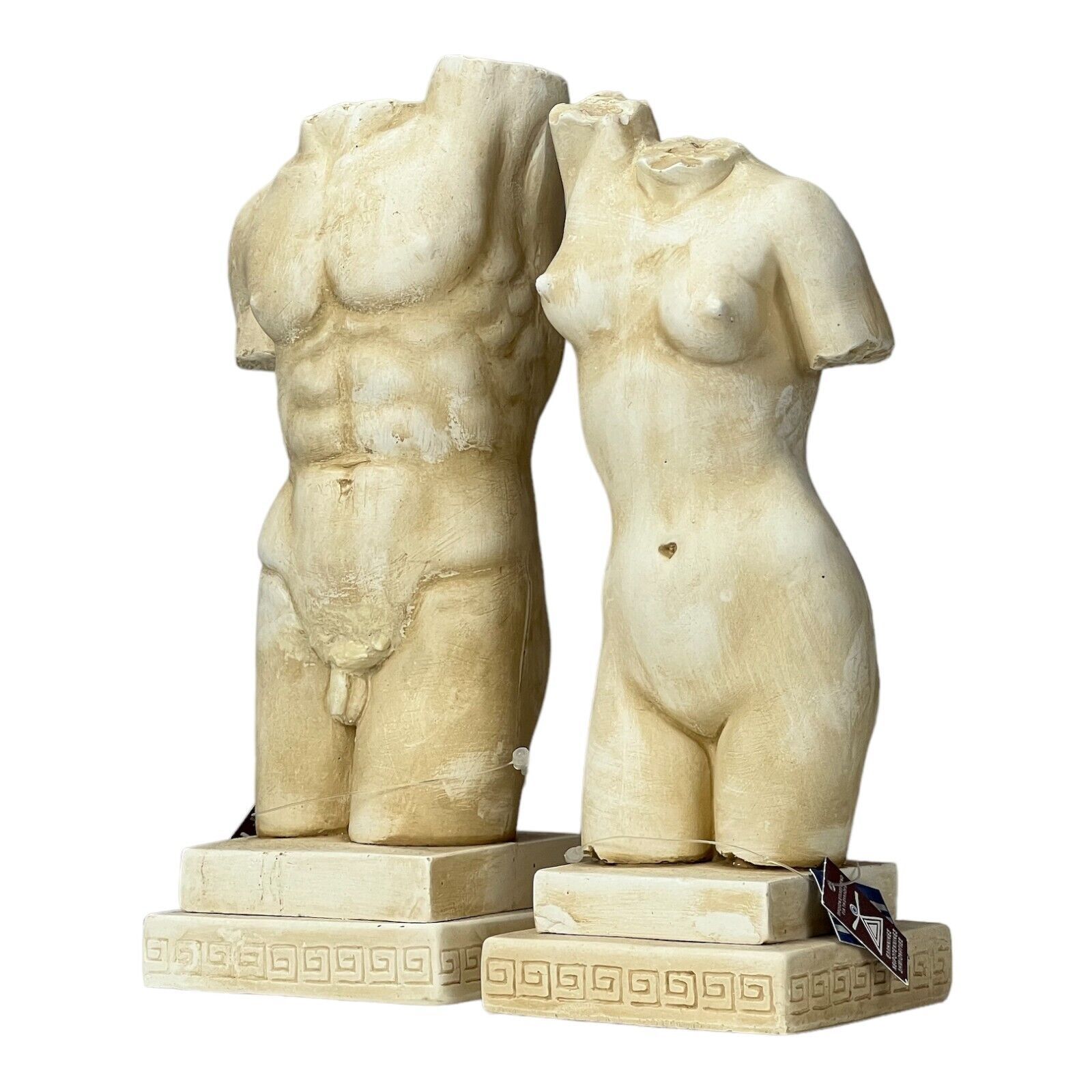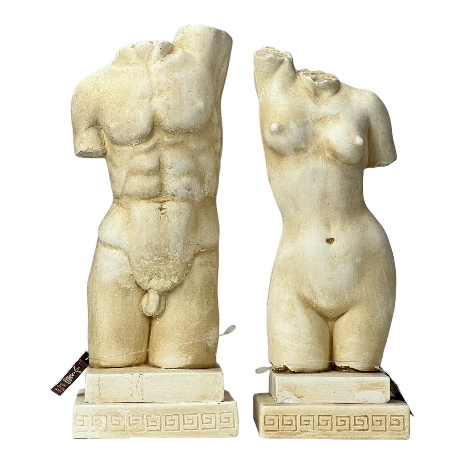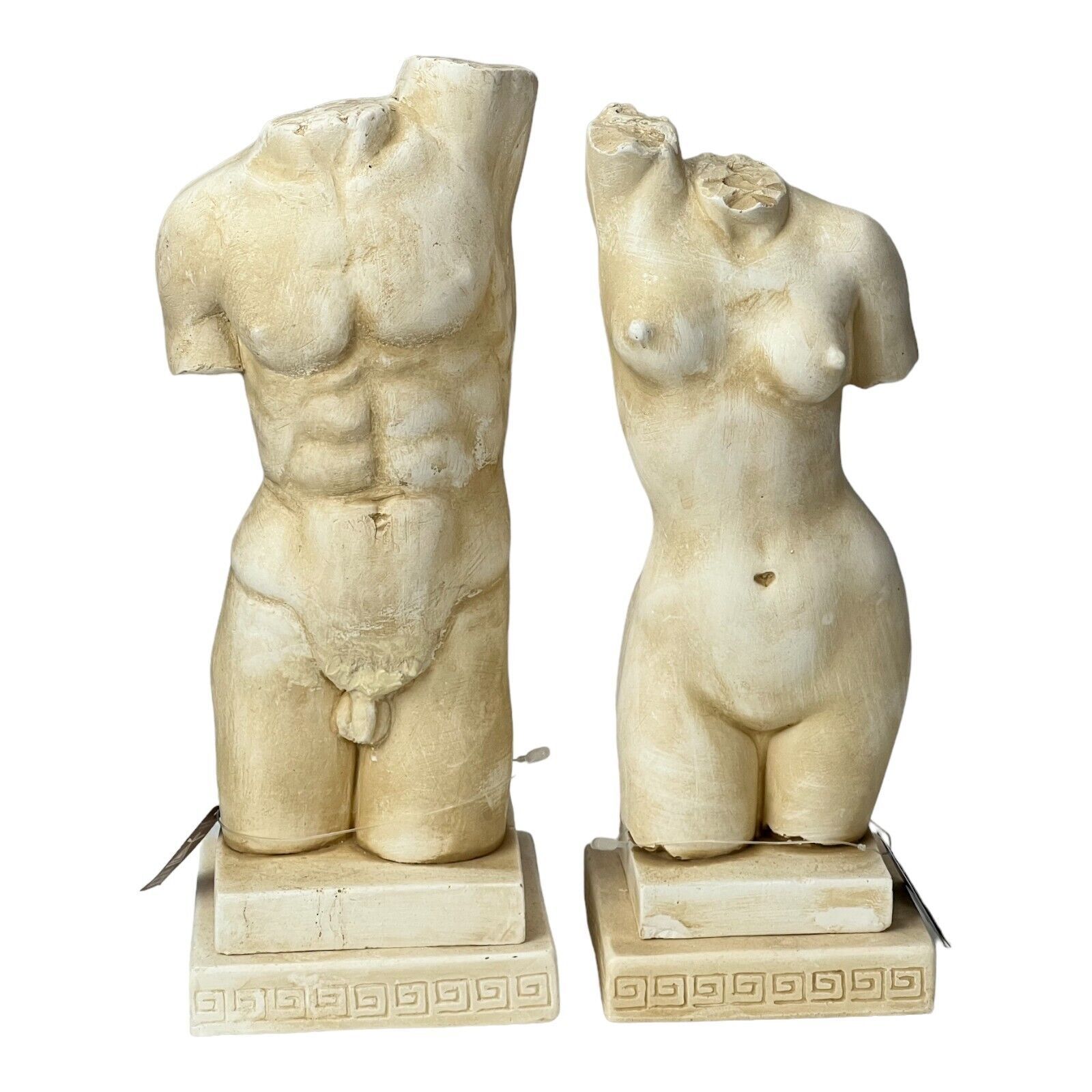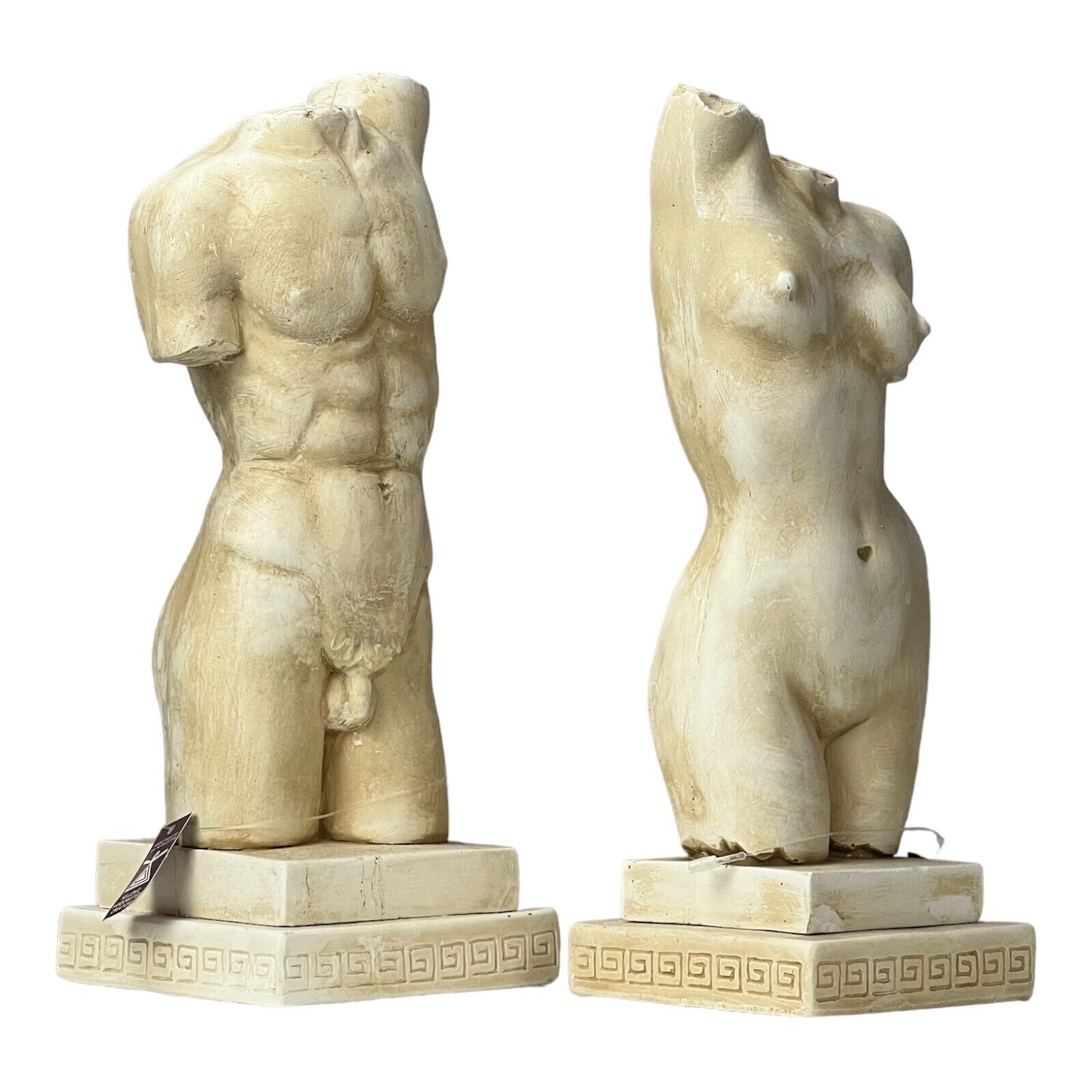 Set Nude Female & Male Body Torso Greek Statue Sculpture Erotic Art Cast Stone