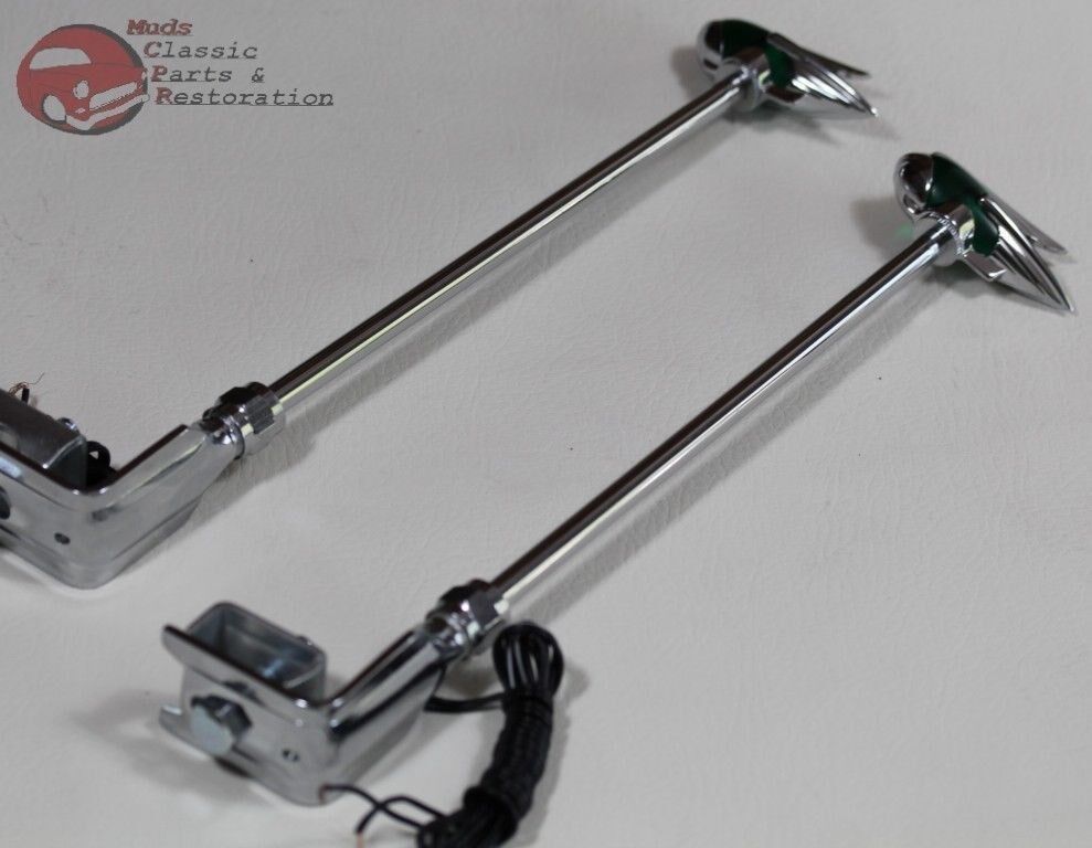 Telescopic LED Green Light Up Art Deco Front Fender Guides Clamp On Vintage Car