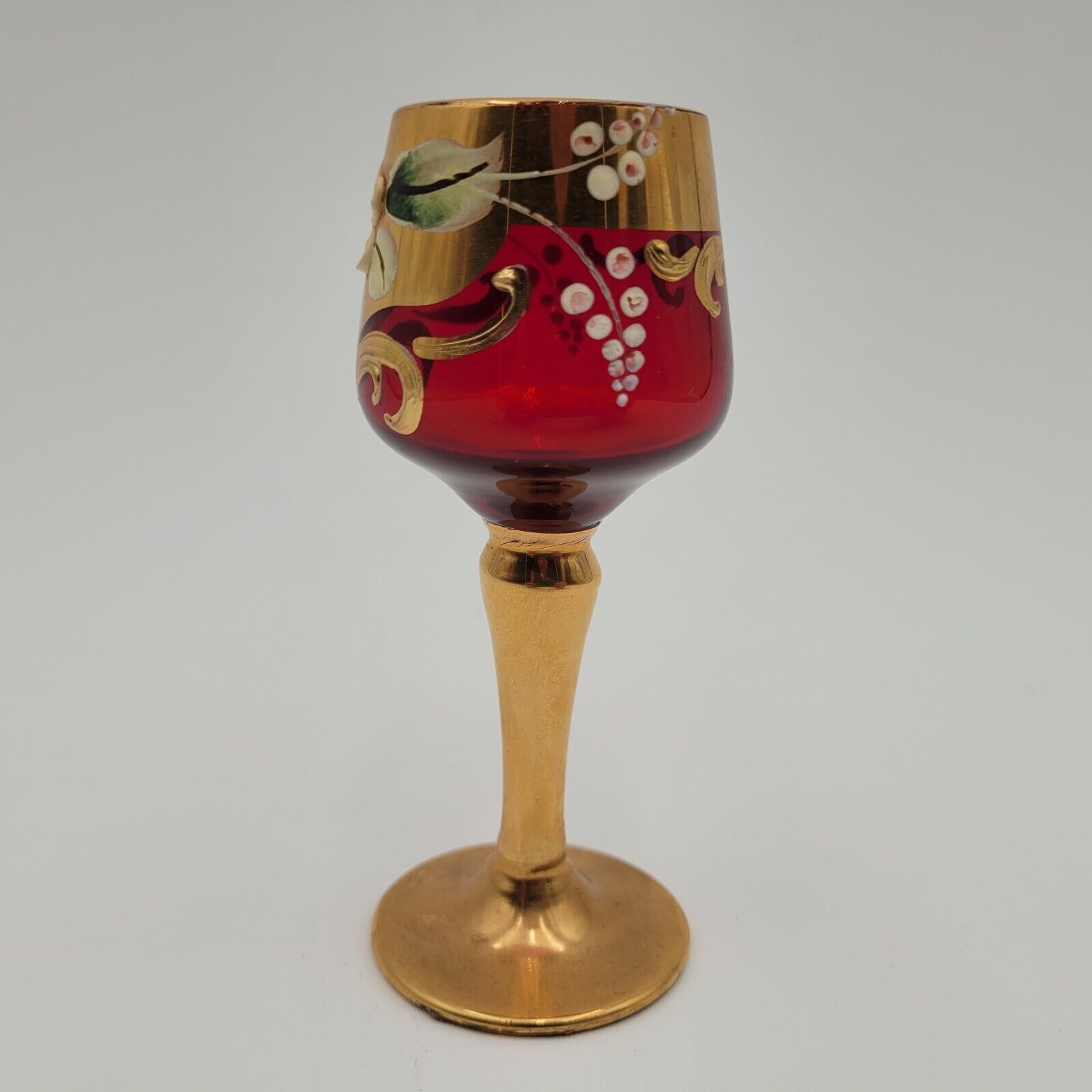 Murano? Ruby Red Italian Murano Glass Gold Leaf Floral Riesling Wine Shot Glass