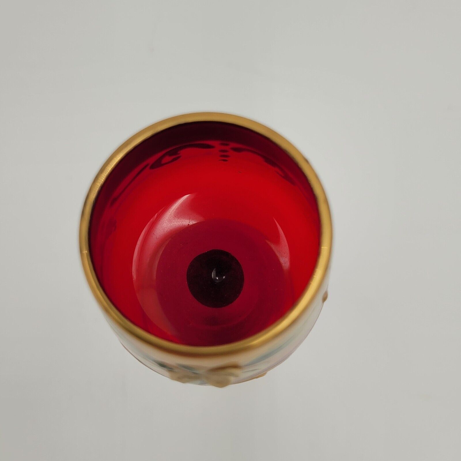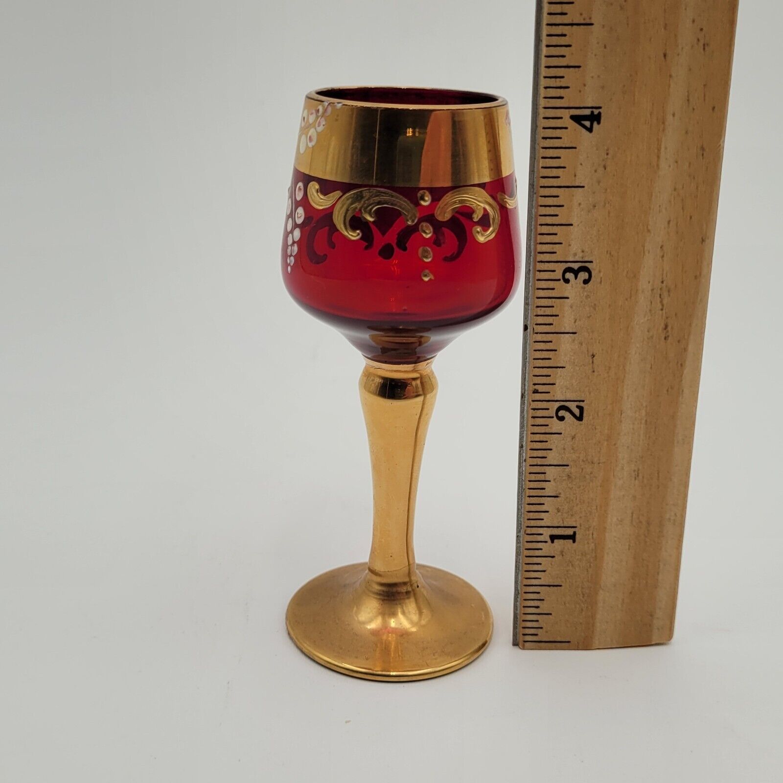 Murano? Ruby Red Italian Murano Glass Gold Floral Riesling Wine Shot Glass