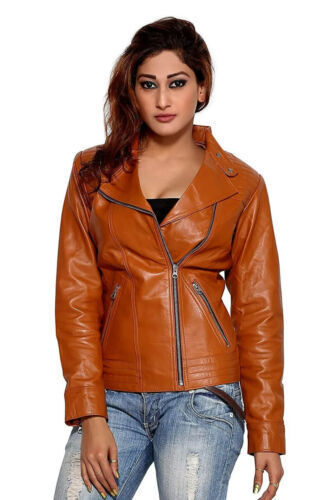 Tan Women's Genuine Lambskin Leather Jacket Stylish Handmade Biker Motorcycle /FS