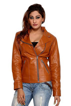 Tan Women's Genuine Lambskin Leather Jacket Stylish Handmade Biker Motorcycle