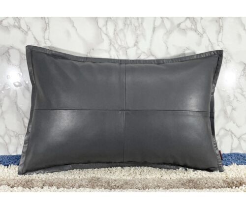 Gray Cushion Pillow Cover Genuine Lambskin Leather Decorative Luxury Home Decor / FS
